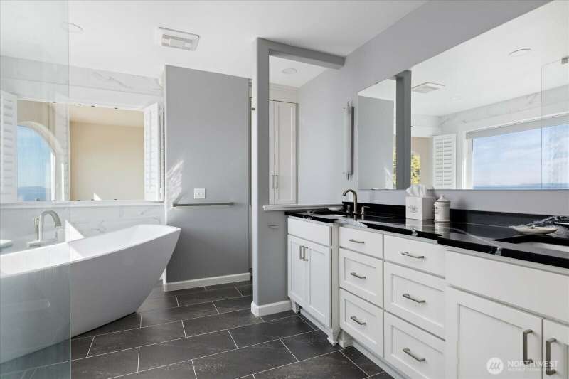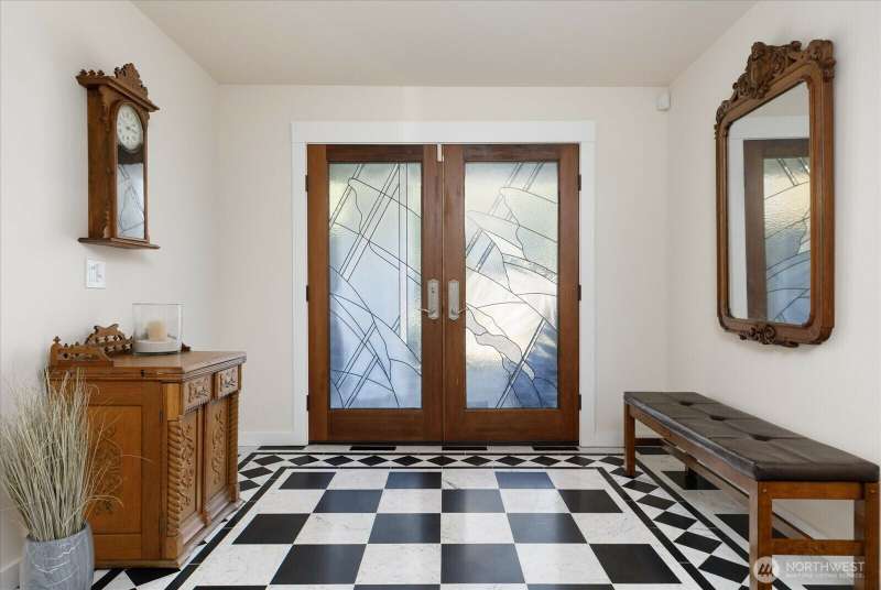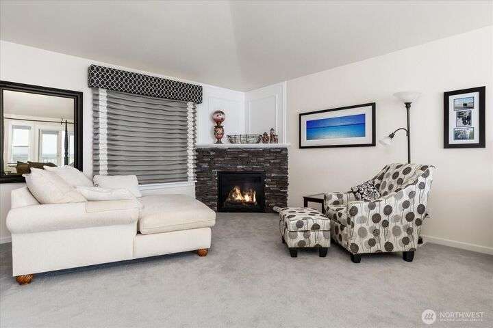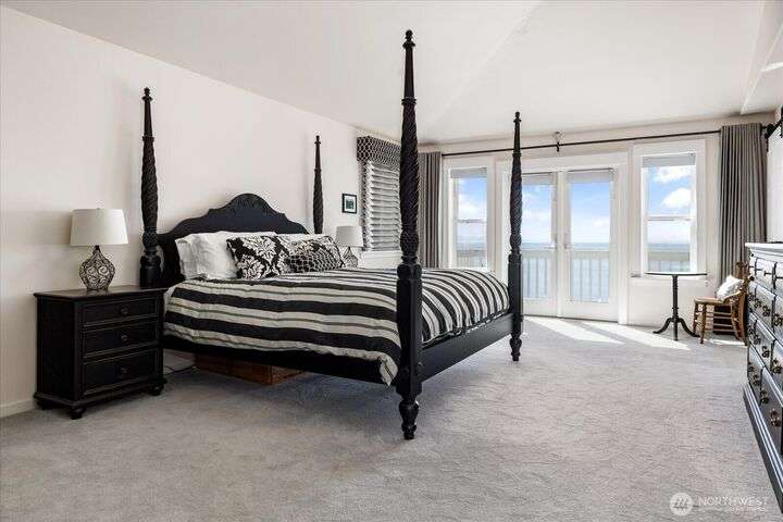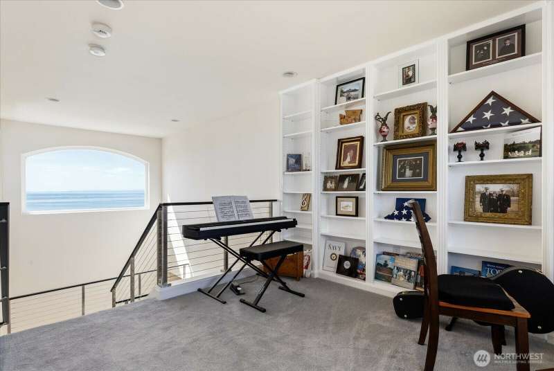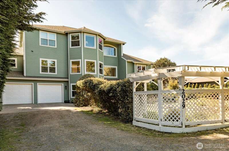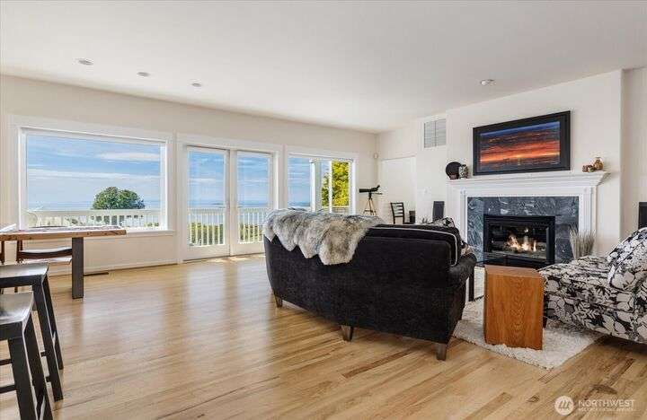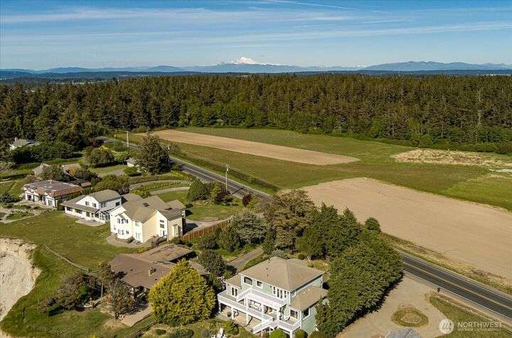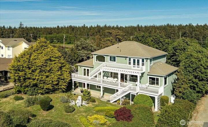 Custom-built Luxury Waterfront home in Whidbey's West Beach area. Fully updated 3-story home w/spectacular water & mountain views. Over 4,494 sqft with 670 devoted to storage & hobby area on lower level. Primary ensuite on 3rd floor w/full bath, library, walk-in closet & private deck. Main floor on 2nd level w/open floor plan, hickory floors, formal dining & living rooms, cook's kitchen w/hickory cabinets & black appliances, plus quartz countertops throughout. Double door front entry w/marble floor, guest suite, den/office, 2-car garage & shop on 1st floor. Yard has gardens, a patio, & tree-lined privacy. Watch cruise ship traffic & sunsets relaxing on multi-level decks. Home appears larger on outside, but it's classic & cozy on the inside.