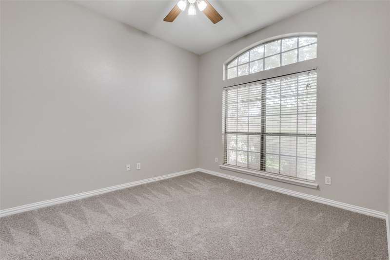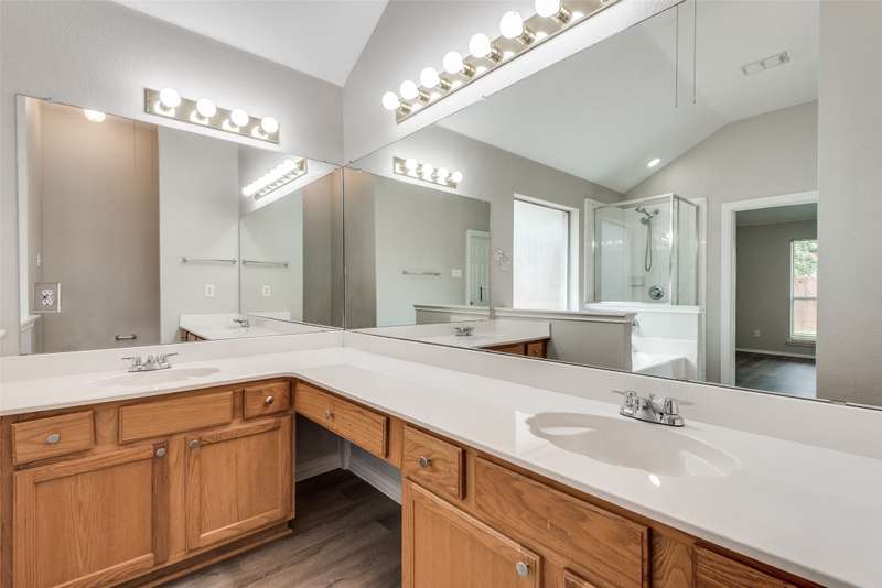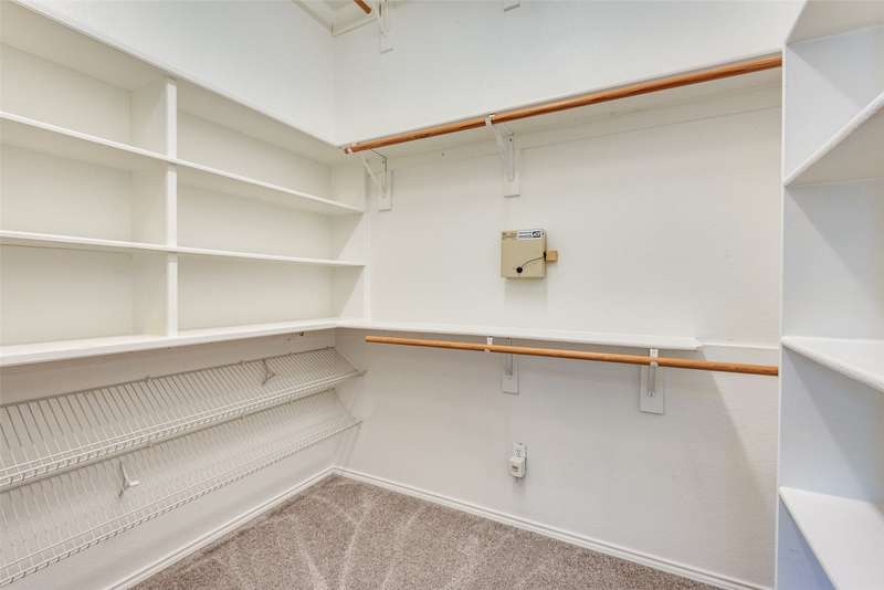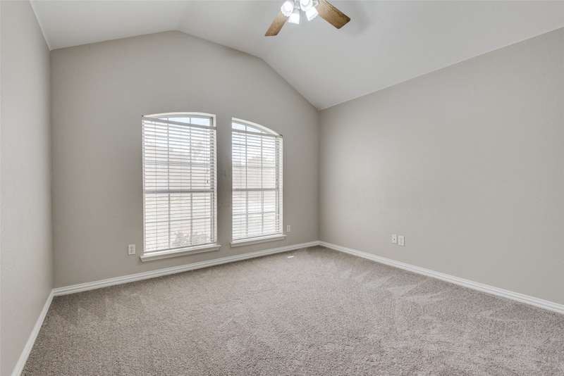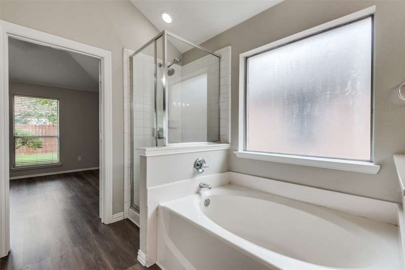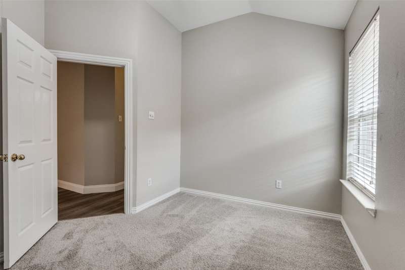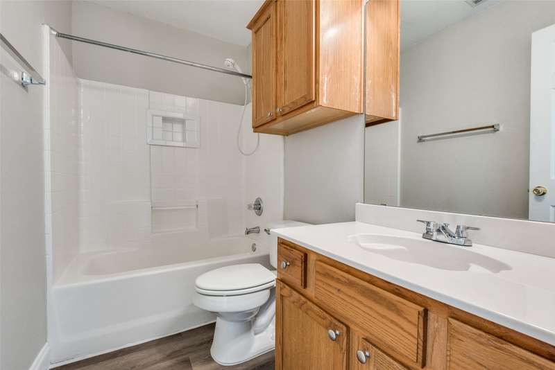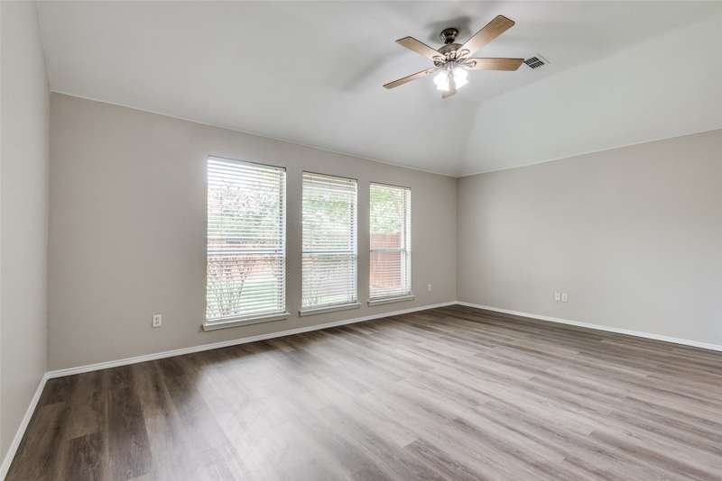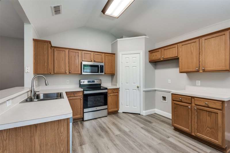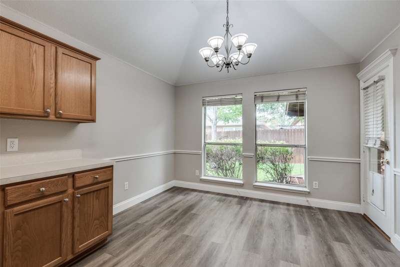 Charming, nicely maintained 4 bedroom home with 2 full baths and a 2 car garage. Bedrooms are split form primary bedroom and each room enjoys a ceiling fan. The vaulted ceiling primary bedroom is spacious with an en-suite bathroom. Primary bathroom features a dual sink vanity, garden tub and a separate shower. Walk-in closet in the primary bedroom is large with shelving and built-in shoe racks. The vaulted ceiling living room is roomy and includes a wood burning brick fireplace with a gas starter. Kitchen overlooks the living room and offers an eat in dining room, breakfast bar and a nice pantry. HVAC was replaced in 2024. Updated interior paint and recently installed luxury vinyl plank flooring in all rooms except carpet in the bedrooms. Yard is fenced with a covered patio.