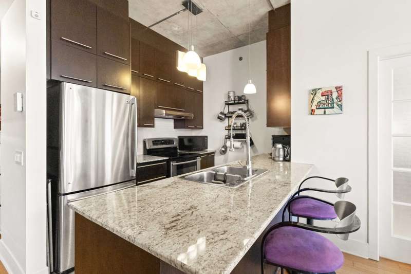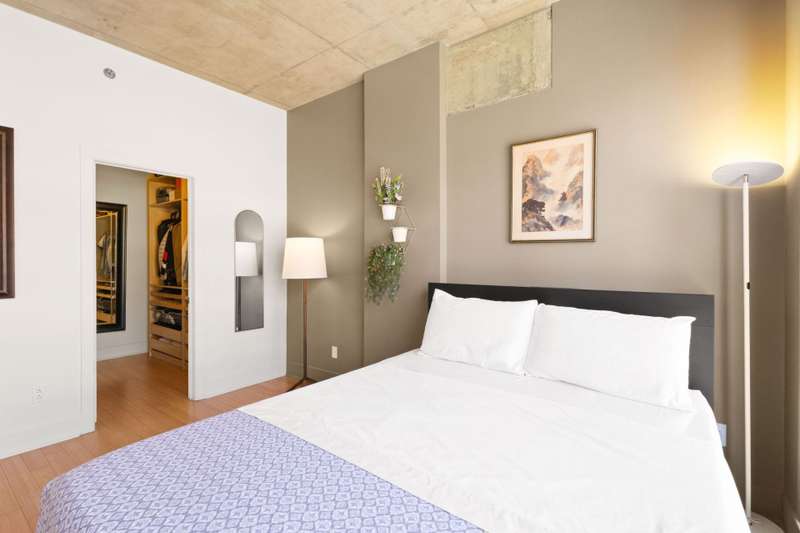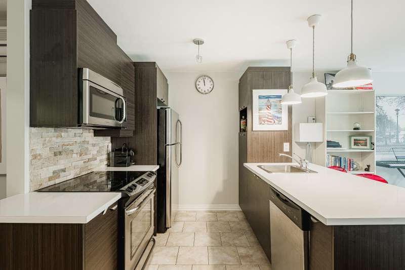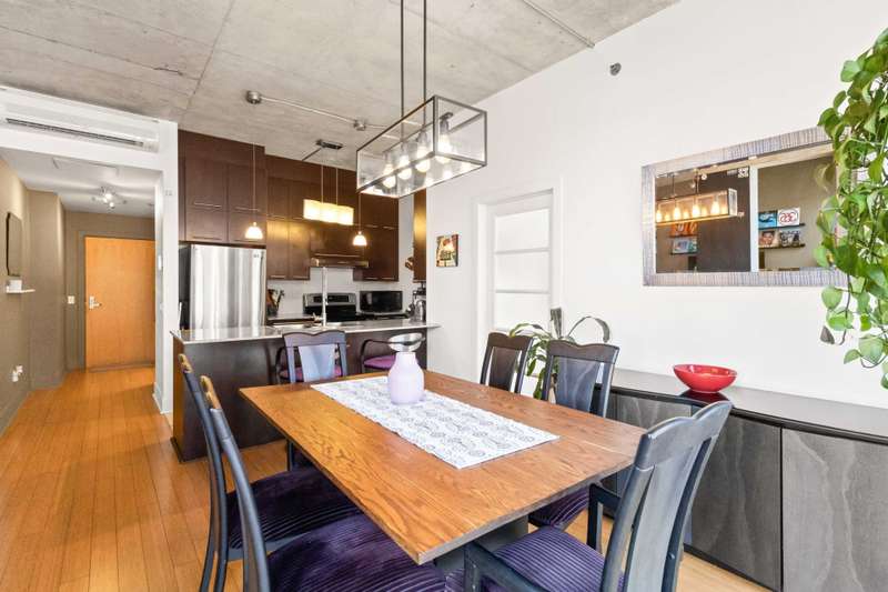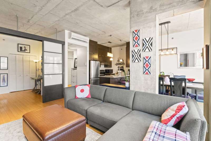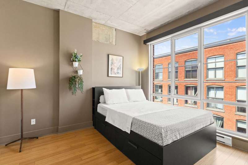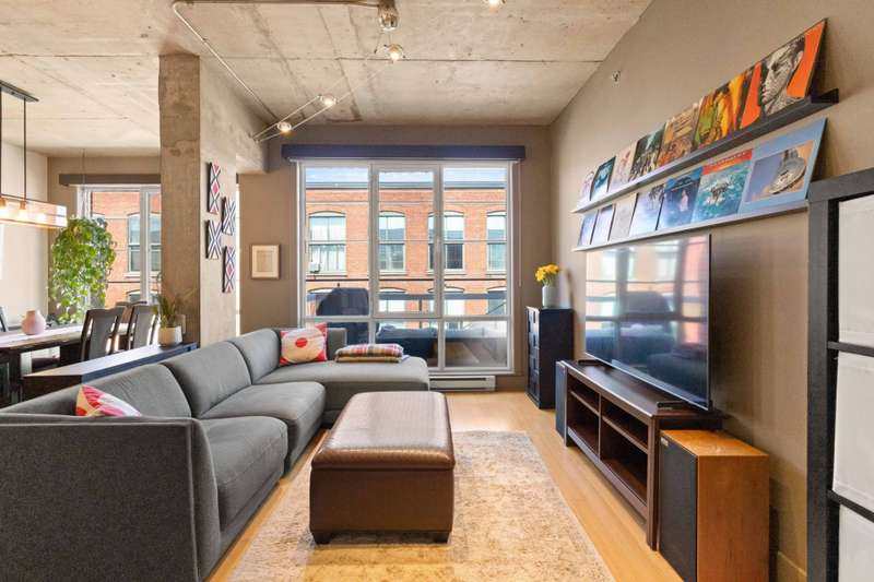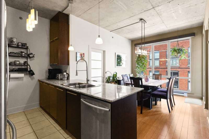 Bright condo on the Lachine Canal with stunning water views. Features a large primary bedroom and a second room with closet--ideal as a bedroom or den. Spacious bathroom with quartz counters and separate shower. Enjoy the balcony, indoor pool, sauna, gym, and free kayak rental. Includes indoor parking and storage. - See addendum