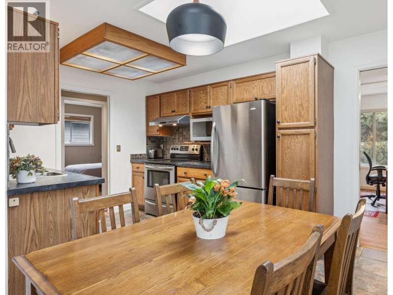 This 4 bedroom, 3 bath home features oak floors, a bright living room with fireplace, French doors to a versatile dining room or den, and a skylit kitchen with eating nook, stainless appliances, and deck for BBQs. 3 bedrooms on the main including a spacious primary with walk-in closet, ensuite, and garden views. A 1 bedroom garden level suite is ideal for in-laws, older teens or mortgage helper. Extras include A/C, built-in vacuum, and 2-car garage. Enjoy a fully fenced mature Japanese-inspired garden, steps to Parkgate shops, and minutes to skiing, trails, beaches, and golf- nature´s playground at your door. (id:58403)