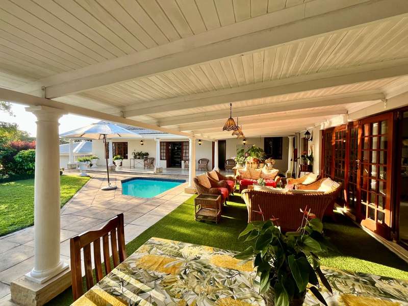 This one of a kind, 6 bedroom farmhouse offers the charm and space of a classic country home, set within the security and convenience of a Ballito suburban estate. A truly unique opportunity, this historic home blends timeless character with modern family living. The heart of the home is a large farmhouse-style kitchen, perfect for family gatherings and entertaining. With three separate lounge areas, there's space for everyone to unwind. A standout feature is the character-filled pub, offering a warm, inviting space for hosting friends or enjoying a quiet evening. The home flows onto a generous wrap-around verandah and expansive outdoor patio, overlooking a beautifully landscaped farm-style garden. Outdoors, enjoy two swimming pools, ideal for relaxed, sunny days in a private setting. This home combines the freedom and charm of a traditional farmhouse with the peace of mind of secure estate living, all just minutes from Ballito’s amenities. A truly unique lifestyle offering. Contact us today to arrange a private viewing.