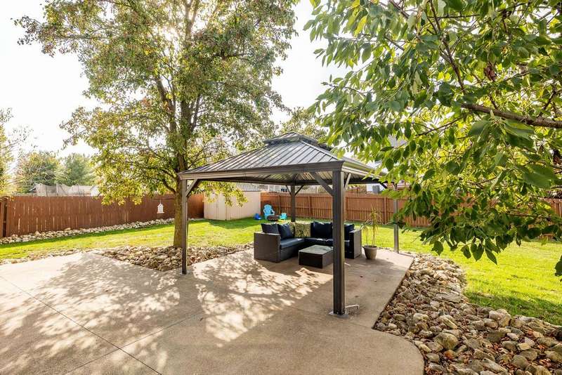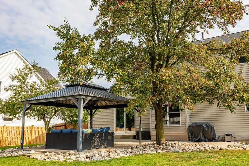 Welcome Home!! Nicely updated and maintained 3 bedroom, 2.5 bath two story home located in one of Delaware's most desired and quiet neighborhoods 'The Woods of Locust Curve' right off SR37 but just minutes from downtown. Some of the updates include: New Roof in 2024! updated baths in '23, all flooring in '22, water heater '24 and a kitchen remodel in 2023 which includes beautiful quartz countertops! Two car garage and partially finished basement with Murphy Bed to convey. Enjoy the outdoors in your own, private and fenced in back yard bosting a fire pit and also an oversized patio space with a 15'x11' pergola with electric! 10'x8' shed with new roof included. Several parks and walking paths are nearby for the kids and dogs. Ring door bell included. Do not miss out on this property!