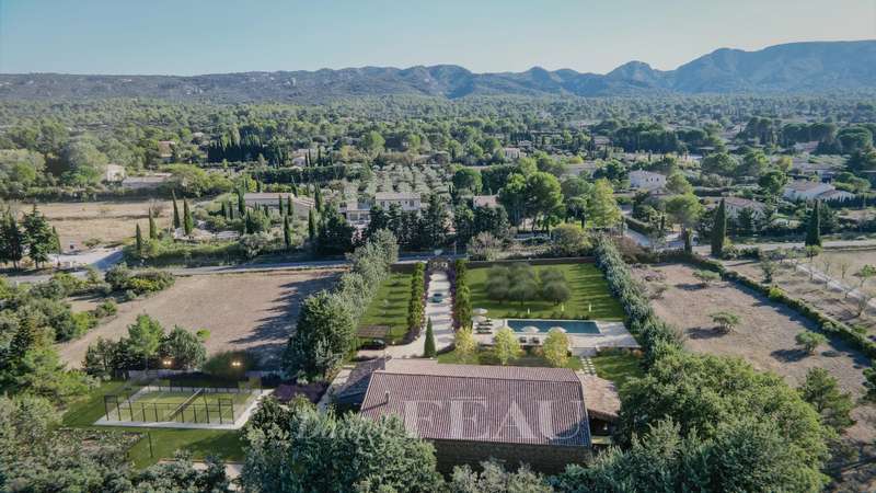 This near 700 sqm property set in a 5800 sqm plot with a swimming pool is in an idyllic setting and commands a view of the Alpilles mountain range. Offering multiple options, the ensemble has enormous potential and the 3D images may give some idea of a project that could be achieved. A more detailed file showing the property as it is in its current state and a potential project is available. The property is in a prime location near the Alpilles Nature Park, and Eygalières is an authentic and sought-after village. A unique opportunity to create a dream home in a superb location.