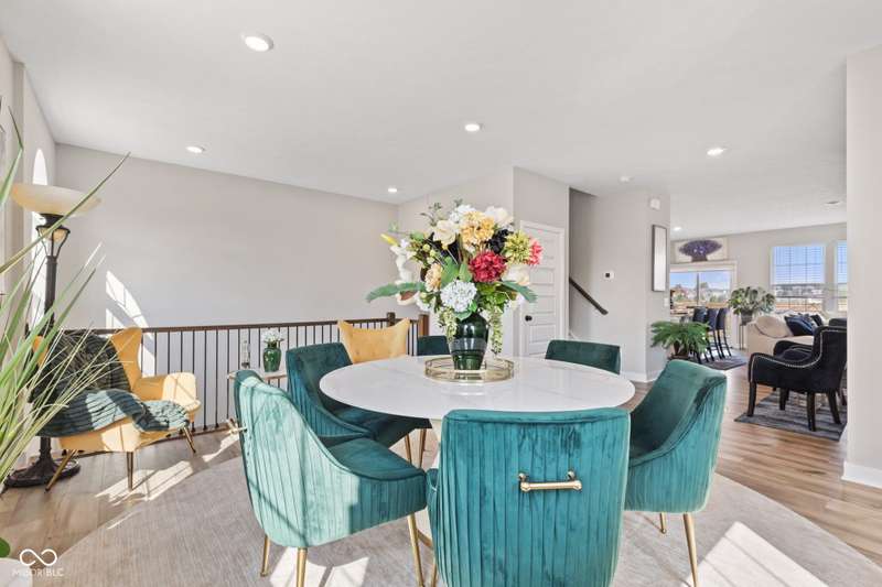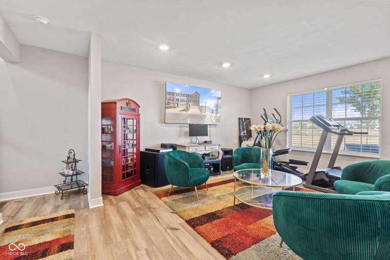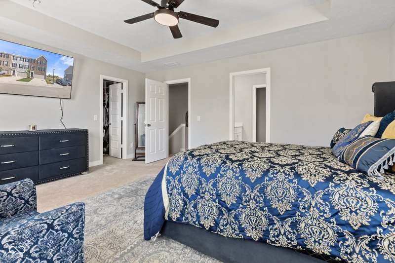 Nestled in the serene surroundings of Hamilton County, this gorgeous 3-story townhome offers over 2,300 sq. ft. of thoughtfully designed living space packed with elegant upgrades in the world-class Carmel Clay school district. The finished lower level includes a stylish wet bar with Shaker cabinetry and a walk-out patio, perfect for entertaining. On the main level, the open-concept layout highlights a chef-inspired kitchen with quartz countertops, Shaker cabinets, stainless steel appliances, a large island, and sophisticated backsplash. The adjoining great room with fireplace flows seamlessly to the balcony, offering a second outdoor enjoyment and entertaining area. A flex room on the main level adds versatility for formal dining, home office, or personal fitness. Upstairs, the luxurious owner's suite boasts a tray ceiling, walk-in shower, and double vanity for a spa-like retreat, joined by two additional bedrooms. Enjoy the community amenities including the pool, playground, walking trails, and sports court. With full lawn maintenance and proximity to downtown Carmel's boutiques, dining, entertainment, and the Monon Trail, this townhome is an ideal blend of comfort and convenience.