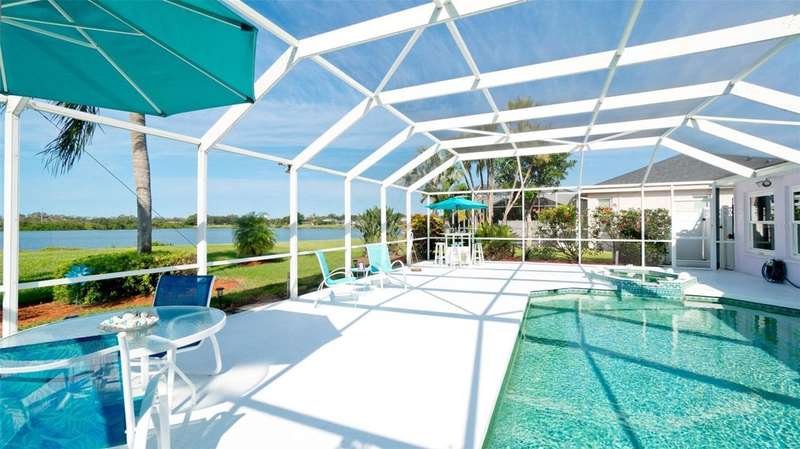 Are you dreaming of your own SLICE OF PARADISE? This stunning pool & spa home in highly desirable GLENN LAKES has been LOVINGLY CARED FOR BY ITS ORIGINAL OWNER SINCE NEW - and it delivers everything you want: sparkling water views, thoughtful updates and Florida living at its very best. From the moment you step inside, your eyes are drawn to the EXPANSIVE LAKE AND POOL VIEWS framed by oversized windows and sliders. The OPEN FLOOR PLAN - combining kitchen, dining and living- makes entertaining a breeze and creates a spacious feel beyond the square footage. The SPLIT BEDROOM DESIGN offers privacy: guest rooms on one side and a serene PRIMARY SUITE on the other, with ensuite bathroom and DIRECT POOL ACCESS. Imagine morning coffee on your front SCREENED PORCH as the sun rises...and evening cocktails by the HEATED, RESURFACED POOL & SPA as the sun sets in fiery colors across the lake. This is Florida living at its finest!UPDATES YOU'LL LOVE:*8-year young roof *Hurricane-rated windows, sliders & lanai storm screen *Newer A/C (2023) *Newer, luxury plank flooring in guest wing (2025) *Newer appliances & quieter pool pump *Heat pool & spa by solar or gas heater *Expanded pool deckAll this in GLENN LAKES, a sought after West Bradenton community just minutes from IMG ACADEMY, GOLF COURSE, DETWEILER'S FARM MARKET, SHOPPING, DINING, ENTERTAINMENT and, of course, the SUGAR SAND BEACHES OF ANNA MARIA ISLAND! WEST-FACING. BIG LAKE VIEWS. POOL & SPA. UPDATED AND MOVE-IN READY. This is the rare opportunity you've been waiting for...schedule your showing today before it's gone!