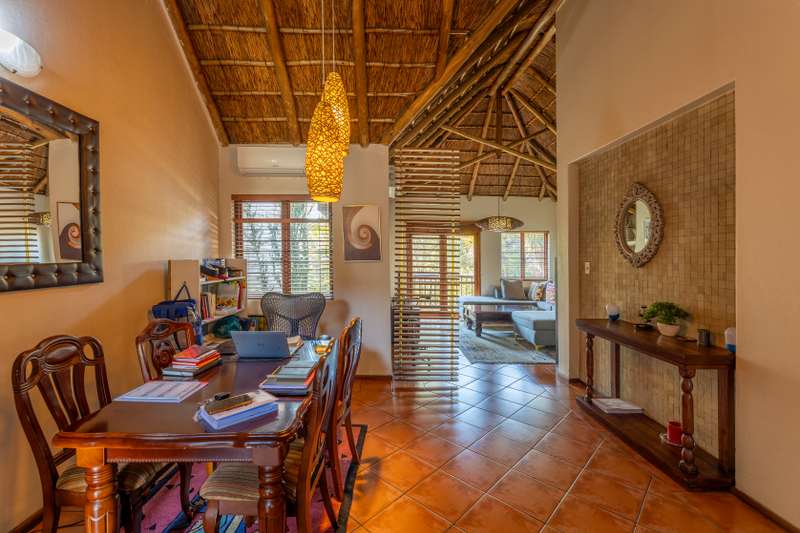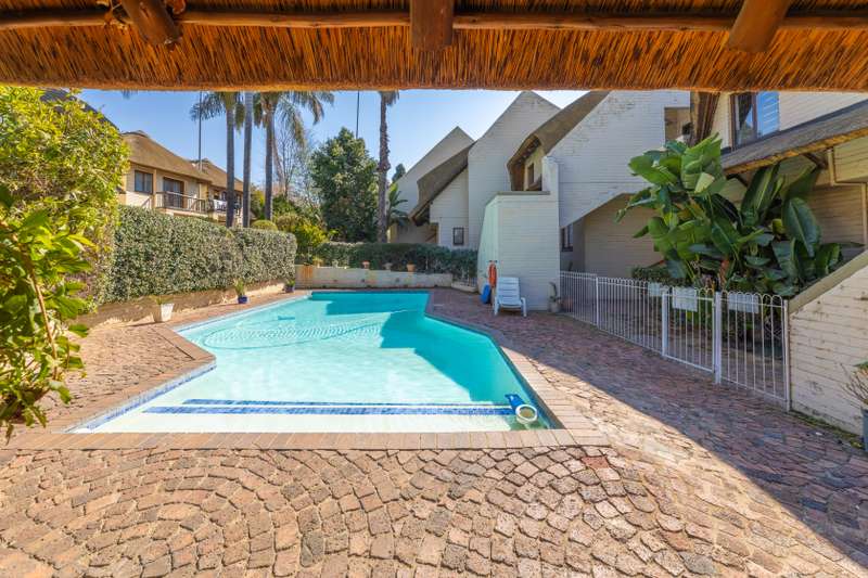This charming 3-bedroom, 2-bathroom thatch townhouse offers serene first-floor living in a secure estate with 24/7 security. Surrounded by lush trees, it exudes a tranquil, holiday-like atmosphere. Enjoy a sparkling pool, renovated kitchen with ample cupboard space, and an open-plan dining and lounge area – the perfect blend of comfort and nature.