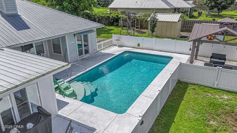 CURRENTLY UNDER CONTRACT, SELLER WILL CONSIDER BACKUP OFFERS- ASSUMABLE LOAN with low 4.125% interest rate! Welcome to your private oasis! This spacious 4-bedroom, 2-bathroom home offers 2,026 sq ft of comfortable living space, perfectly situated on a generous 0.51-acre lot. Step outside and you'll discover a sparkling in-ground pool, perfect for cooling off on warm Florida summer days. There is a dedicated pool barn--ideal for storage for all of your toys. Need extra room? You're covered with 4 additional storage sheds, offering ample space and flexibility. Save on all the utilities with solar panel, well, and septic.Inside, enjoy spacious bedrooms, a large living area, and a kitchen ready for your personal touch. The garage has been converted to a perfect man-cave or utilize it as a private WFH office. Whether you're hosting gatherings or seeking peace and privacy, this property delivers the best of both worlds. Don't miss your chance to own this unique property that blends space, function, and outdoor enjoyment.All sizes/measurements are approximate, buyer/buyer's agent responsibility to verify if important.