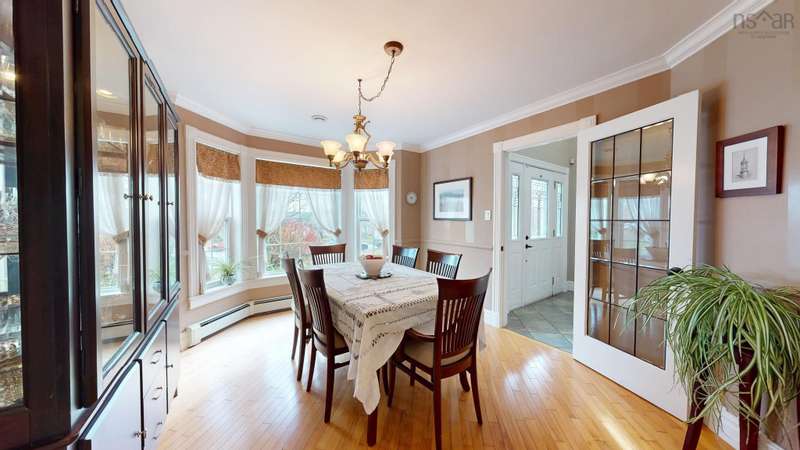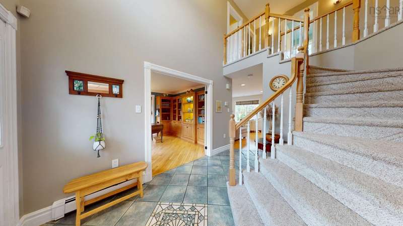 This 3-level family home on a quiet cul-de-sac in Fox Hill subdivision has 4 bedrooms and potential for a 5th in the finished basement. The eat-in kitchen is open to the living room with a propane fireplace. The house has a large primary suite with adjacent laundry, impressive storage spaces, 2 full and 2 half bathrooms, and a heated attached 2-car garage. Custom cabinets in the home office, fresh bamboo flooring, new lighting, and new bathroom vanities are some of the upgrades this house has thoughtfully received over the years. The private dining room's bay window overlooks the Annapolis Valley below. There is a hemlock pergola, a large brick patio, and a shed in the private backyard. The welcoming wrap-around porch has views of the front gardens and apple blossoms at the side. This pretty house is conveniently close to Kentville and New Minas amenities and uses town utilities, while enjoying county taxes. Children in this home would attend Port Williams Elementary School, Evangeline Middle School, and Horton High. The home is located a short walk to NSCC.