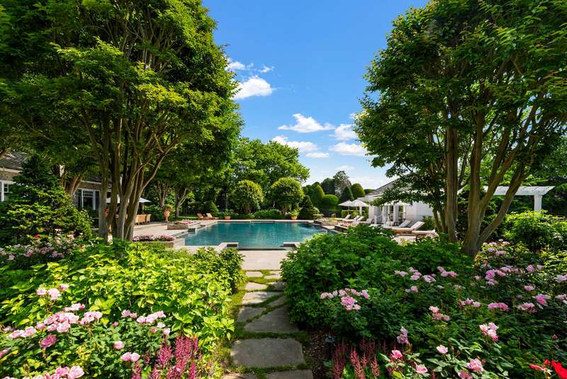 Located south of the highway in Southampton's prestigious Fordune Association and just moments from the ocean and very close to town, this exceptional estate represents the epitome of luxury living in the Hamptons. Spanning over 5.5 acres, the property boasts expansive lawns, meticulously-maintained gardens and millions of specimen plantings, ensuring unmatched privacy, tranquility and a parklike, amenity-rich environment. Built under commercial building standards/codes, every aspect of this turnkey estate, from its grand architectural design to its lavish interiors, showcases a dedication to excellence and sophistication. The full compound includes a magnificent residence of approximately 20,000 square feet, including the finished lower level, and including the 2,634 square foot accessory building that serves as a state-of-the-art fitness center with a gym, yoga studio with a 4-station yoga wall, massage room, spa and salon (for your private hair stylist). The grounds also feature a pool house pavilion, saltwater 40x60 swimming pool, tennis court with pavilion, basketball court and a 2-car garage/service building, primarily used for storing golf carts, which provide access to the ocean beach via the Fordune Association's beach access right of way. The main house is constructed with a combination of wood frame and structural steel, featuring western red cedar shingles and northeastern granite in a random pattern on parts of the facade, along with a recently replaced western red cedar roof. The home includes 13 bedrooms, 14 full baths and 2 half baths. The interior spaces are vast, with a grand foyer boasting 20 foot high ceilings and a one-of-a-kind Natural American and Brazilian walnut staircase and wood flooring. Further on, the impressive 35 x 25 foot living room offers 21 foot ceilings. This sublime space includes a fireplace and walls of glass overlooking the expansive terraces and pool area. Off the living room, the east wing first floor houses a media room, a beautiful office/library with a stunning walnut finish and coffered ceilings, plus a bedroom suite. The second floor of the east wing, accessed by the main staircase in the foyer, includes a library and 2-bedroom suites, one being the expansive primary bedroom and the other being a VIP suite. The primary bedroom features a sitting area, 4 closets, including a large walk-in, 2 bathrooms and a balcony overlooking the pool. The west wing first floor features 2-bedroom suites, plus a junior primary bedroom, a formal dining room and a professional kitchen that is both enormous and high-end, well-equipped and ideal for a private chef. The kitchen includes an expansive sitting area and a separate breakfast area. A second staircase leads to the very private guest wing with 5-bedroom suites. The generous lower level, accessible by 2 staircases, includes a state-of-the-art wine storage facility, a 400 square foot dedicated electrical, media, telephone and internet center, as well as a recreation room with a fireplace and media room. The lower level also includes a private staff/guests' quarters with a living room, 2 bedrooms and 2 full baths. Listing ID: 916158