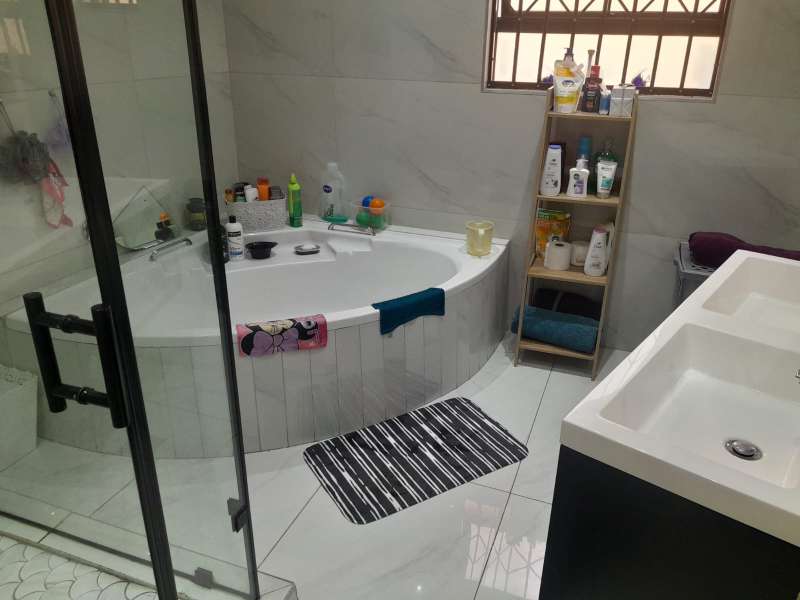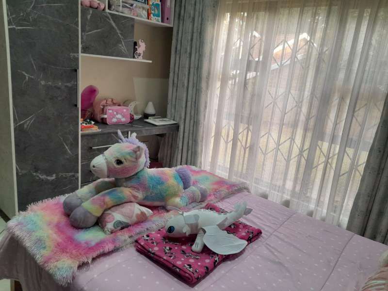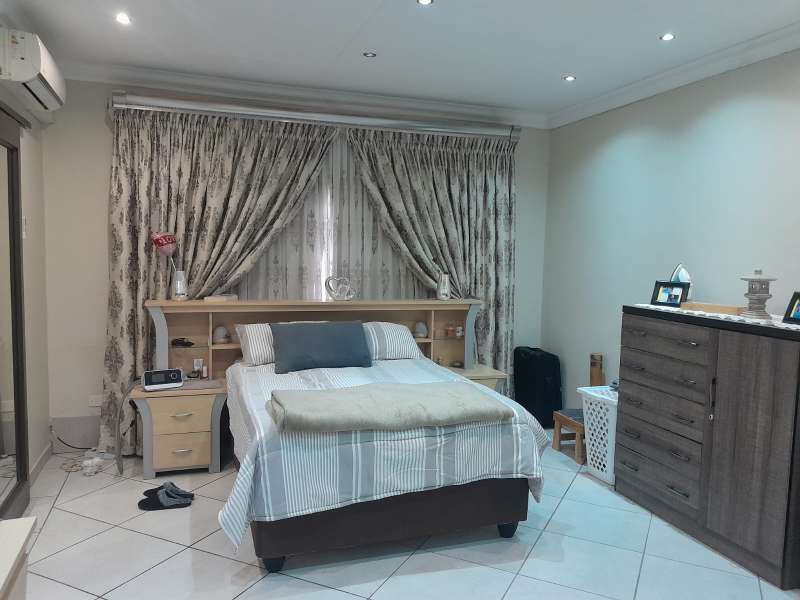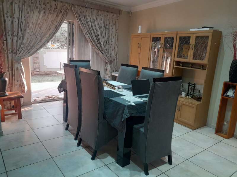 This spacious and modern family home is perfectly located in the sought-after Safari Gardens neighbourhood, close to top schools and shopping centres. Move-in ready, it offers comfort, style, and plenty of space. Step through a welcoming entrance hall into a generous lounge, dining room, and a private study—ideal for working from home. The kitchen is modern and well-equipped with ample cupboard space, a pantry, and a separate laundry. The home features four spacious bedrooms with built-in cupboards. The main bedroom boasts a full en-suite bathroom and a walk-in wardrobe. A second modern bathroom serves the remaining bedrooms. The exterior is equally impressive with a neat, beautifully maintained garden and a sparkling swimming pool—perfect for family fun or entertaining guests. A borehole and JoJo tank ensure reliable water supply year-round. Parking is no issue with a double automated garage and covered parking for up to six vehicles, plus additional open parking space. This is a rare opportunity to own a stunning, spacious home in a prime location. Don’t miss out—contact us today to schedule a viewing !