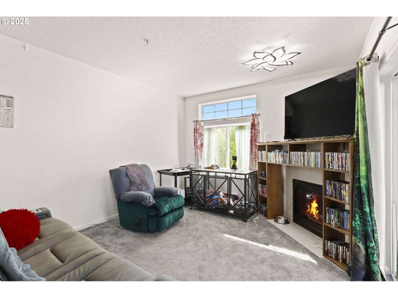 Updated with all NEW carpeting and bathroom/Kitchen flooring, these large windows make this one level condo special. Corner unit, very private and the trees and shrubbery help this feel park-like. Kitchen with eating bar, Dining area, and Great room with fireplace. Two Spacious Bedrooms, Attached and Oversized One car garage, driveway parking, and guest parking in designated places. Progress Ridge Town Square is across Horizon Blvd. Seller works nights, so schedule accordingly.