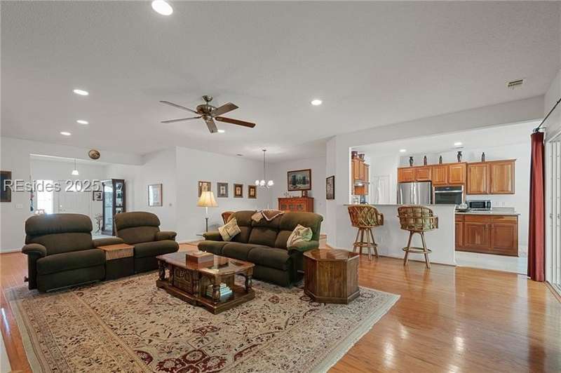 Spacious & Serene, 3 bedroom/2bath Wisteria has been reduced and is now offered at an unbelievable price of $524,900! This home is located in the amenity rich, 55+ Sun City community. This home offers the perfect blend of open concept living to host family and friends or a lovely private retreat. The spacious floor plan flows seamlessly from the living room, with a cozy fireplace, into the eat in kitchen with stainless steel appliances, which includes a gas cooktop and a double oven. The oversized sun room extends your living space and creates the ultimate spot for morning coffee, casual dining or evenings of relaxation, while overlooking the peaceful wooded backdrop seeing nature at its best. This home has a clean stucco report, HVAC in 2015 and is move in ready! A short drive to Hilton Head beaches, shopping, Savannah and many restaurants. Come and take a look at this special home.