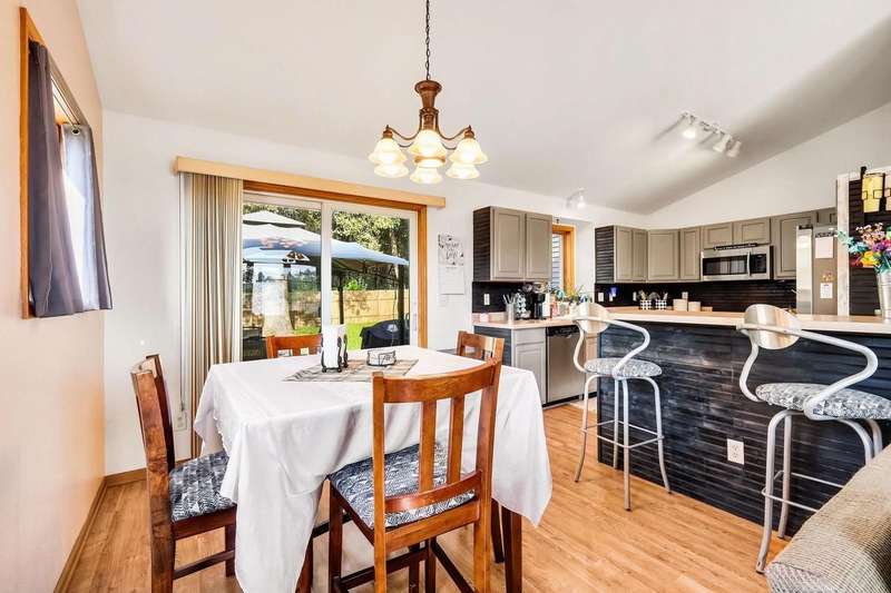 FEEL RIGHT AT HOME! Welcoming 4 bed, 2 bath home on a fenced corner lot with soaring vaulted ceilings & an open floor plan! Sunny main level features a kitchen w/ stainless steel appliances & island complete w/ breakfast bar. Adjoining living & dining room are great for entertaining all your guests in one space. Primary ensuite features vaulted ceilings & walk-in closet. Huge bonus room is perfect for a bedroom with walk-in closet or flex space for crafting, office work, or hobbies! Lower Level rec room w/ gas fireplace & another bedroom. Basement with built-in storage shelves. Relax in your fully fenced backyard complete with concrete patio! Move-in ready updates include new Furnace/AC, Fridge, Oven, & Water Heater all in 2024. Great location, walk to Deerfield Schools and Dream Park!