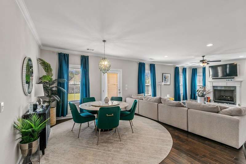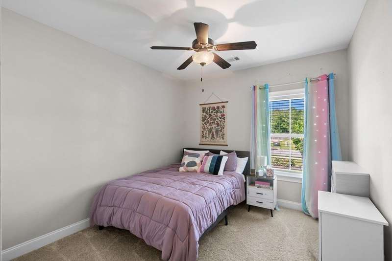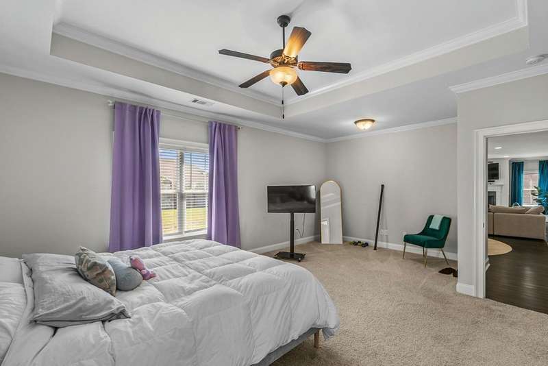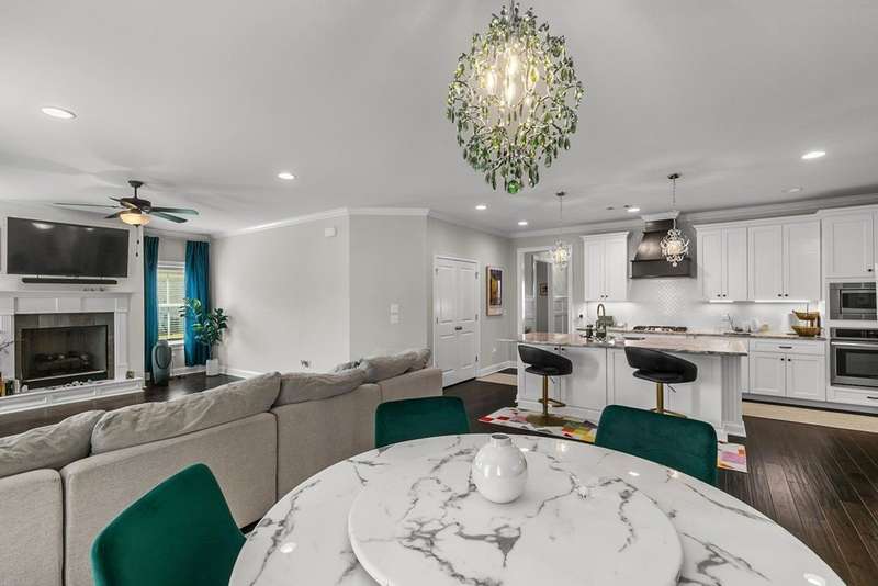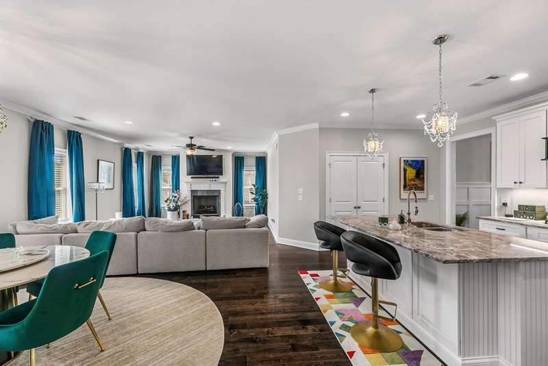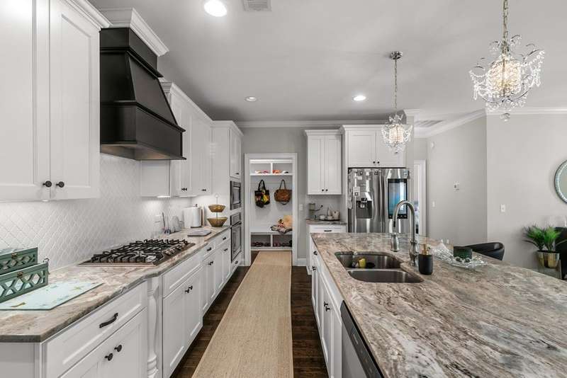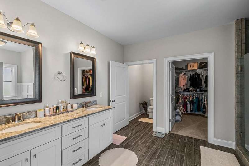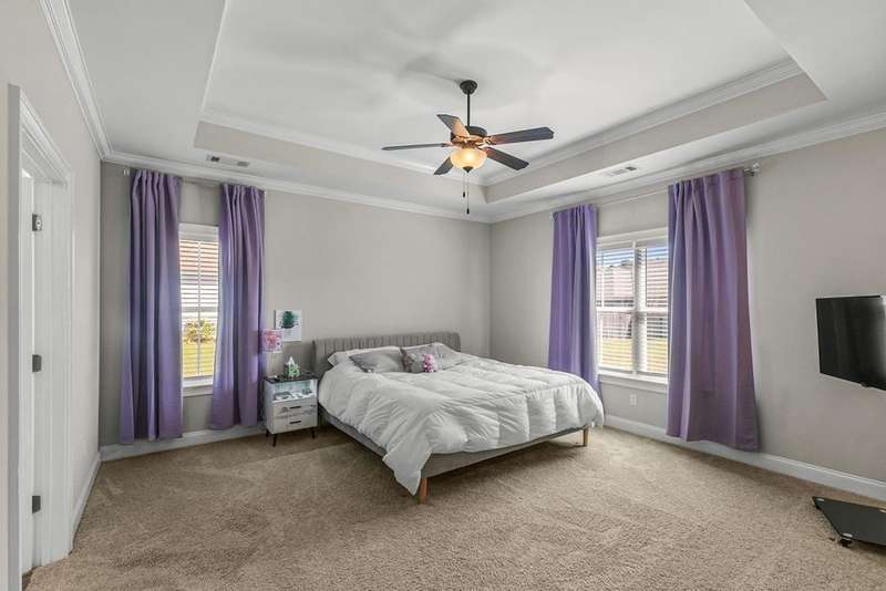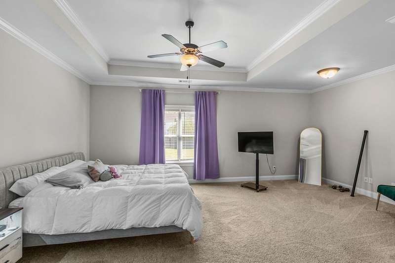 Beautiful home in a desirable Subdivision. This stunning 5 bedroom, 3.5 bath home offers 3,041 sq.ft. of living space & was built in 2019. As you enter, you're welcomed by a spacious foyer with elegant board & batten wall accents, setting the tone for the style throughout. The formal dining room also features custom board & batten walls adding timeless charm. The home showcases a gorgeous open floor plan with granite countertops, a large island, & a cozy breakfast area. The kitchen is a chef's dream complete with a gas cooktop, stylish vent hood, self-cleaning oven, built-in microwave, dishwasher, garbage disposal, & a tankless gas water heater. The family room boasts a gas fireplace while coffered ceilings in the dining room create a perfect space for entertaining. The split bedroom design provides privacy & comfort. The master suite is generously sized with a spa-like bath featuring double vanities, a soaking tub, a large tiled shower, a private water closet, & a huge walk-in closet. Upstairs, the 5th bedroom offers a large private retreat with its own closet & full bath, ideal for guests, teens, or an in-law suite. A spacious laundry room with a mudroom area & convenient half bath adds functionality. This home sits on .43 of an acre & features a large privacy-fenced backyard with a covered patio, perfect for outdoor entertaining or adding an in-ground pool. This home is all brick with stone accents, low-E Argon gas windows, 2 car side entrance garage and a termite bond.