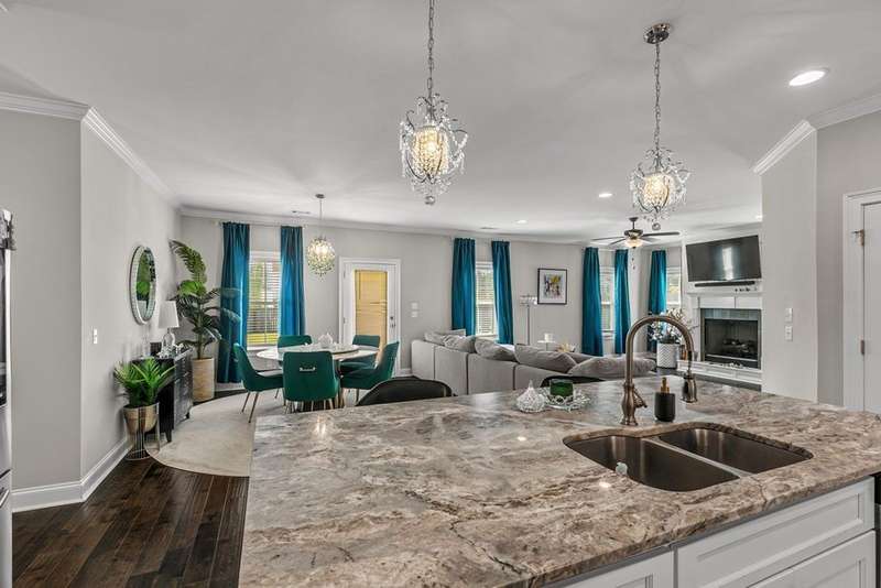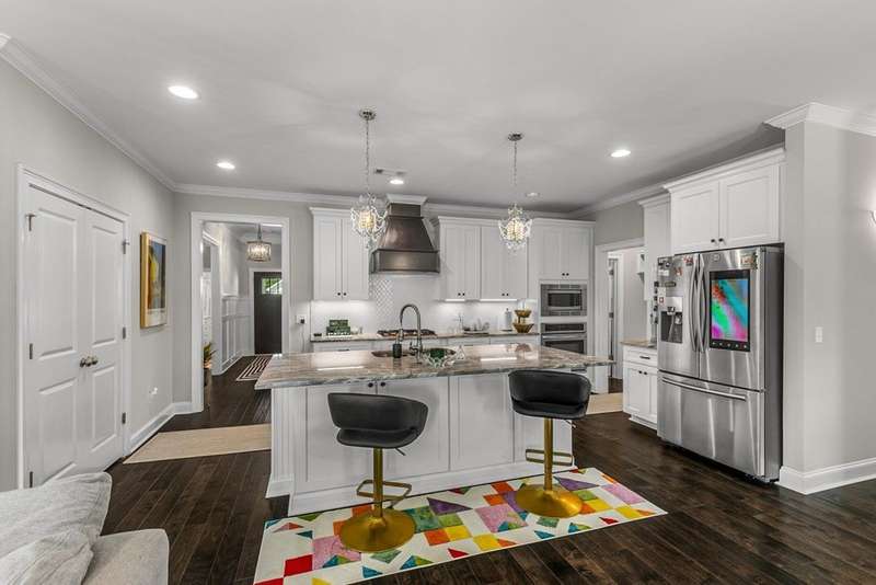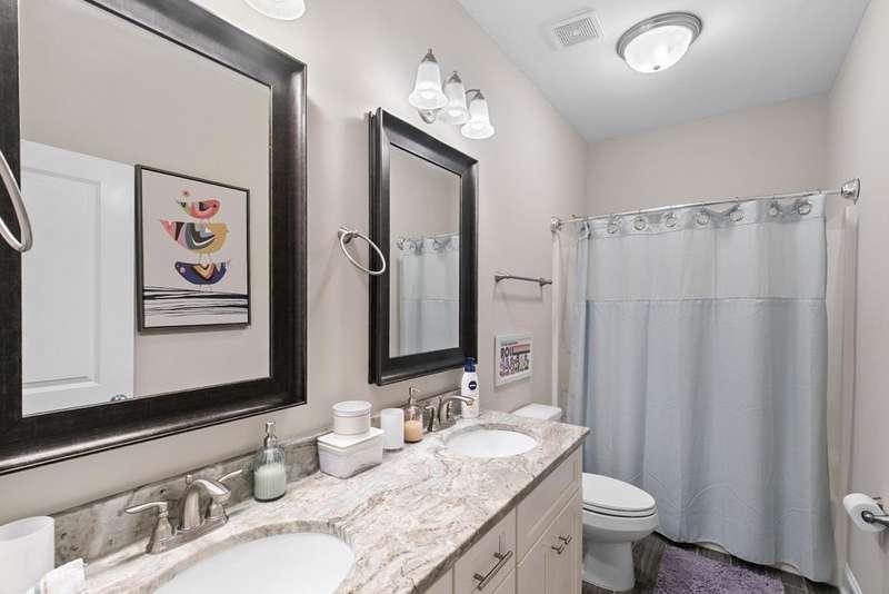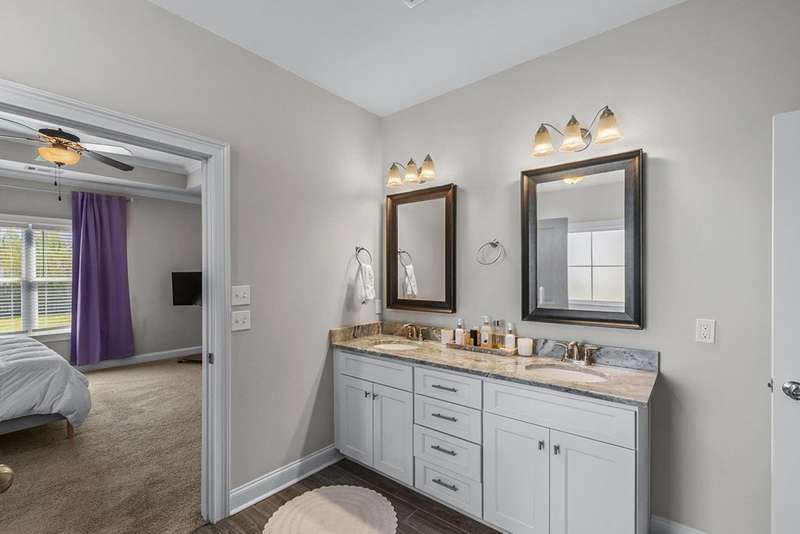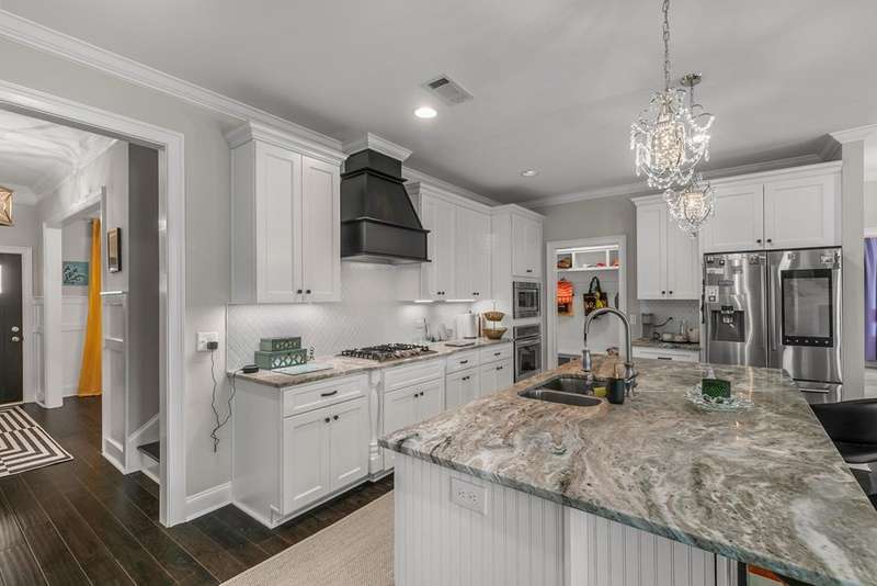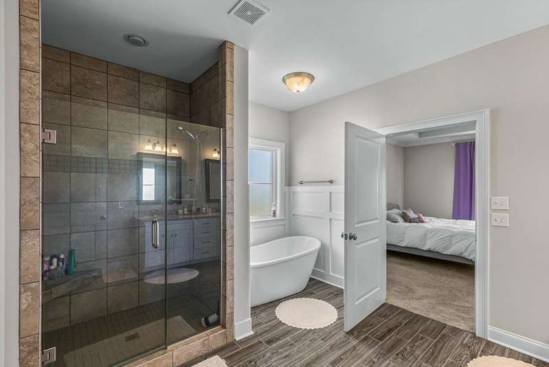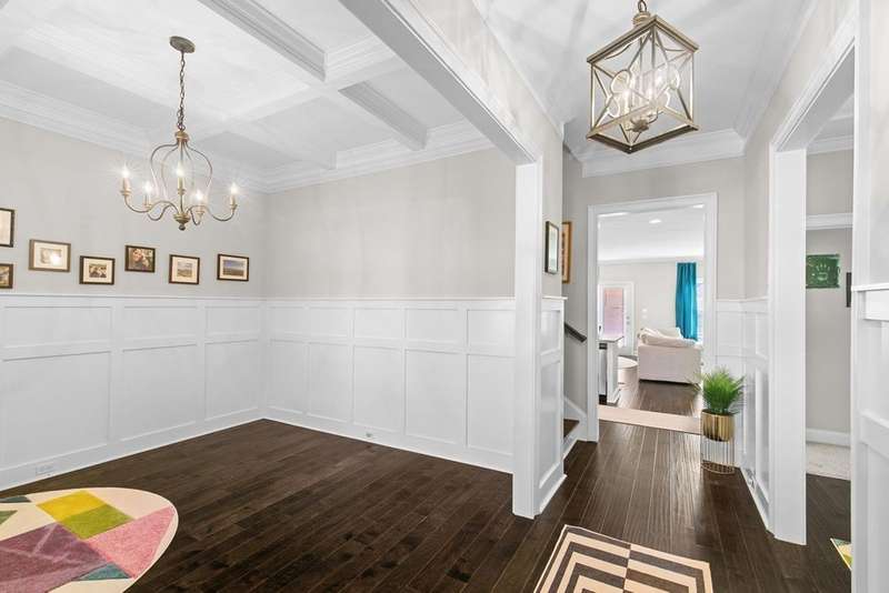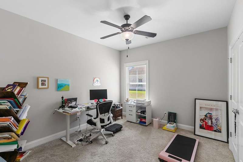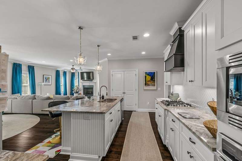 Beautiful home in a desirable Subdivision. This stunning 5 bedroom, 3.5 bath home offers 3,041 sq.ft. of living space & was built in 2019. As you enter, you're welcomed by a spacious foyer with elegant board & batten wall accents, setting the tone for the style throughout. The formal dining room also features custom board & batten walls adding timeless charm. The home showcases a gorgeous open floor plan with granite countertops, a large island, & a cozy breakfast area. The kitchen is a chef's dream complete with a gas cooktop, stylish vent hood, self-cleaning oven, built-in microwave, dishwasher, garbage disposal, & a tankless gas water heater. The family room boasts a gas fireplace while coffered ceilings in the dining room create a perfect space for entertaining. The split bedroom design provides privacy & comfort. The master suite is generously sized with a spa-like bath featuring double vanities, a soaking tub, a large tiled shower, a private water closet, & a huge walk-in closet. Upstairs, the 5th bedroom offers a large private retreat with its own closet & full bath, ideal for guests, teens, or an in-law suite. A spacious laundry room with a mudroom area & convenient half bath adds functionality. This home sits on .43 of an acre & features a large privacy-fenced backyard with a covered patio, perfect for outdoor entertaining or adding an in-ground pool. This home is all brick with stone accents, low-E Argon gas windows, 2 car side entrance garage and a termite bond.