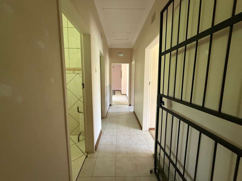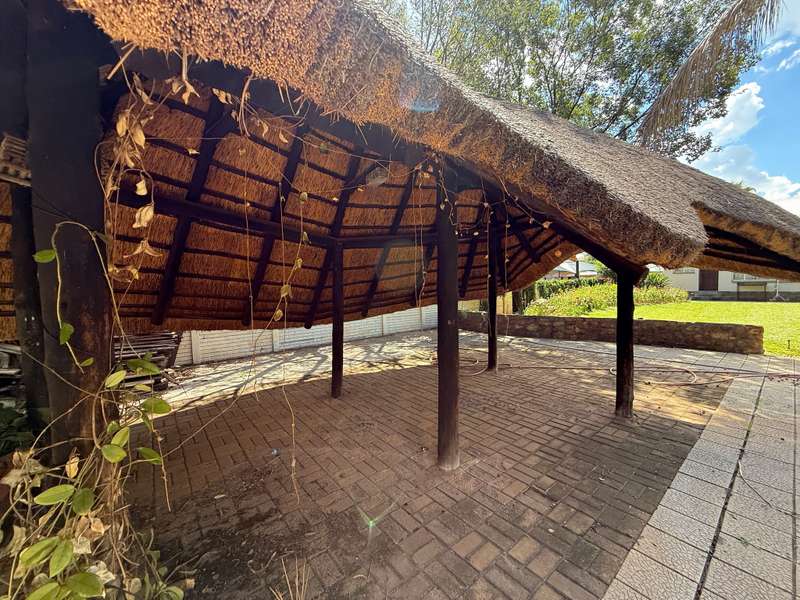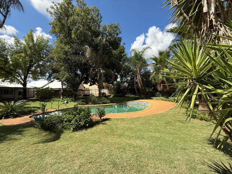 2974 square meter property, on very popular and busy street, close to busy intersection in Wilkoppies! One of thee best possible new location for your business. 320 square meter home – 3-bedroom home, 2 and a half bathrooms, study, 2 living areas, sizable kitchen with walk in pantry/storeroom (this was a fourth bedroom and could easily be transformed back into a bedroom or office). Freestanding from the home is a double garage, double carport in front (could easily be closed), laundry, and staff quarters with bathroom. At the back of the home, a porch looks out onto a well-maintained garden, with swimming pool and lapa. Borehole with irrigation, water tank with pump. Ample space for development. Front garden, well established and manicured. Property is fully walled, with motorized gate.