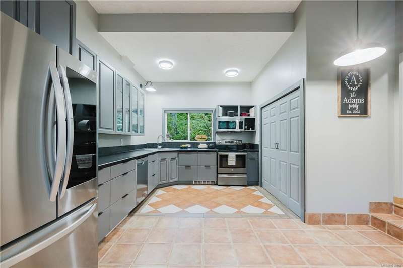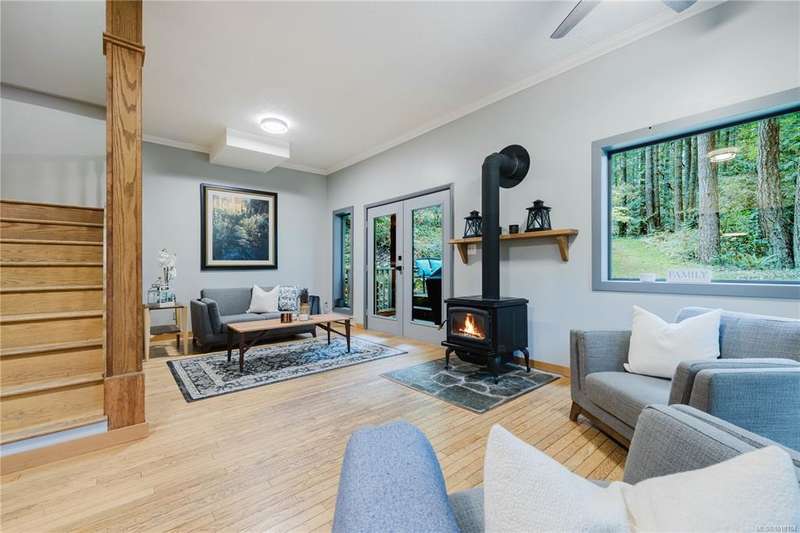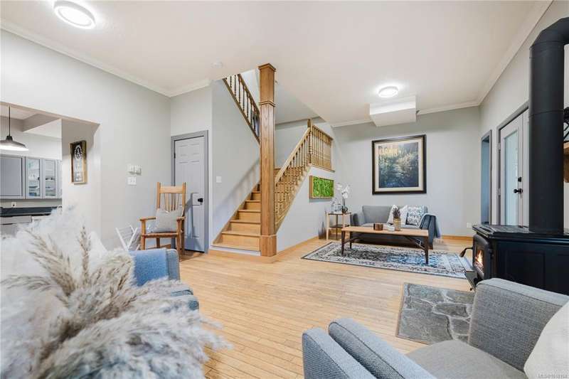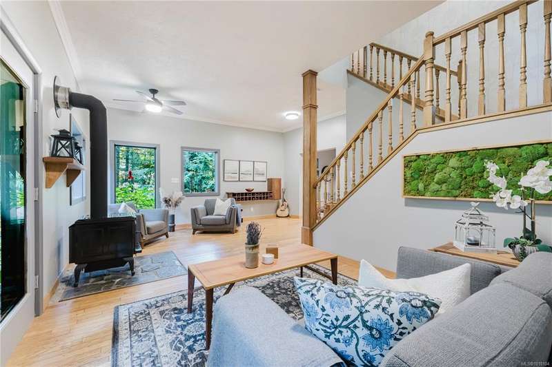 This home, fondly known as Little Orchard House, rests on 3.29 fully fenced A-2 acres in one of the loveliest corners of the Cowichan Valley. Perched midway up a gentle hill, it overlooks a forest of Arbutus and Fir, catching the afternoon light and birdsong that fills the trees. The 2-bedroom plus den home exudes warmth and craftsmanship—oak flooring, wood-burning stove, and a spacious country kitchen at its heart. Upstairs, the den with custom walnut woodwork and primary suite with private balcony and spa-style ensuite offer tranquil comfort. A mudroom turned pottery studio sparks creativity, while every window frames peaceful nature views. Outside, enjoy a fruit orchard, berries, and lower meadow with seasonal pond and firepit. The over-height 48'×23' heated workshop with I-beam is ideal for artisans or woodworkers. Complete with RV pad, it’s perfect for dogs, horses, or anyone craving a slower, inspired life surrounded by nature. WELL WATER AND SEPTIC SERVICES HERE.