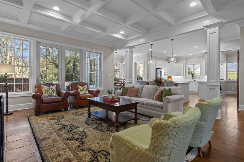 Nestled in the heart of Davidson, this exceptional home offers the rare opportunity to live just a short walk from charming shops, top-rated restaurants, and Davidson College. Thoughtfully designed with quality craftsmanship and superior finishes, this residence seamlessly blends character and modern convenience. Inside, you'll find an inviting open floor plan with abundant natural light, custom millwork, custom wine cellar, and hardwood flooring throughout. The chef's kitchen features a large quartz island, subway tile backsplash, and custom light fixtures?perfect for entertaining. The coffered ceiling great room serves as a stunning gathering space, while the spacious primary suite boasts a luxurious en suite bath. Step outside to enjoy the serene backyard, complete with a custom saltwater pool, exquisite decking, and professionally designed landscaping. Additional features include a two-car garage with epoxy flooring, ample storage, and a beautifully designed outdoor living space.