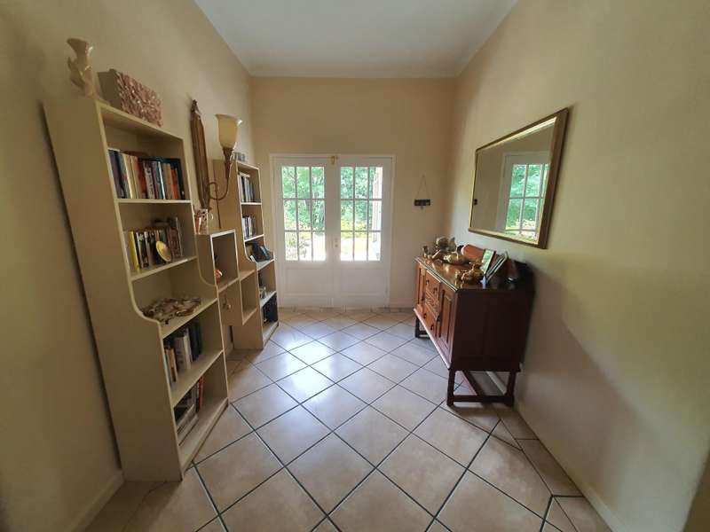 -A covered patio the length of the home for a long family table for entertaining . 2 B/Rooms also with french doors