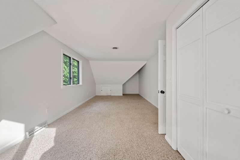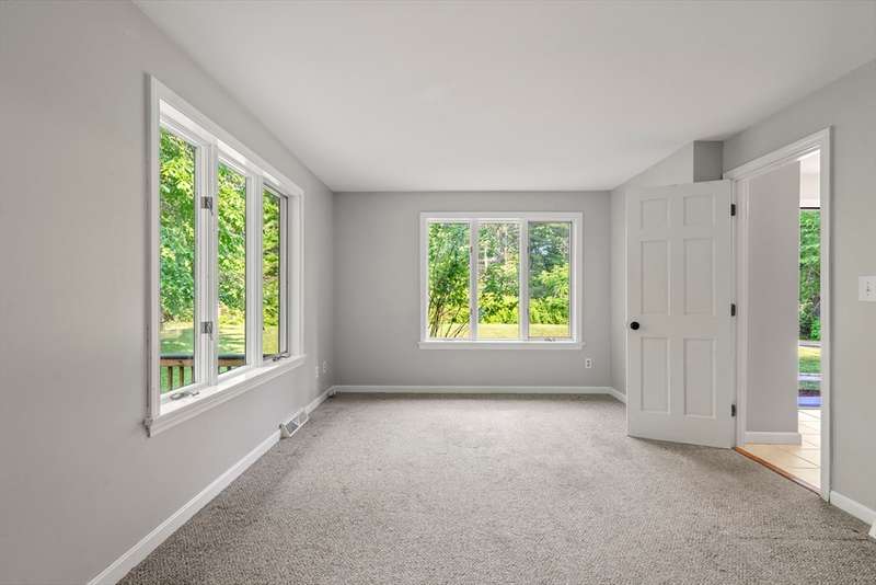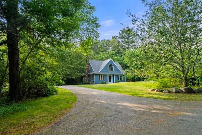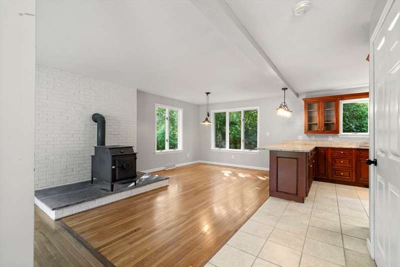 Nestled on almost 6 acres of naturally beautiful land, this contemporary home offers a perfect blend of comfort and versatility. The sunlit, open-concept floor plan includes an updated kitchen featuring cherry cabinetry, stone countertops, breakfast bar, gas stove, and a casual dining area. The inviting living space centers around a cozy wood stove, while a separate office easily convertible into a fourth bedroom adds flexibility. A half bath and laundry room with washer and dryer complete the main level. Upstairs, you'll find three spacious bedrooms, a full bath with a soaking tub and walk-in shower. The finished LL provides two additional rooms ideal for storage, a home gym, or a playroom. Outdoor living is just as inviting, with a patio, deck, and fire pit area. Adding to the appeal is a charming rustic cabin brimming with character and potential. You can choose to restore it or convert it into a fully functional Accessory Dwelling Unit.