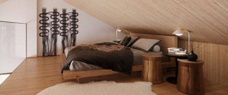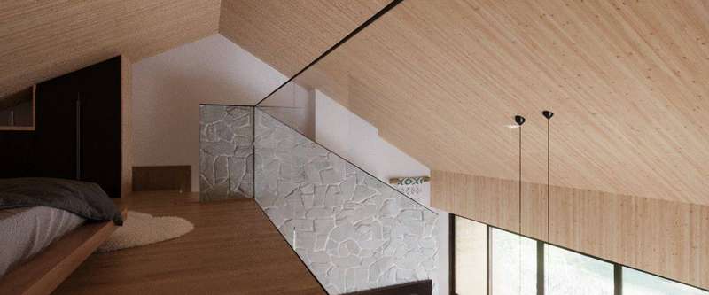 With a main level and a gallery, the design seamlessly blends modern sophistication with rustic charm. The first floor has an entry area, kitchen, dining room, living room, bedroom, bathroom, and terrace. On a gallery, there is a second bedroom. A heartwarming atmosphere is created with natural materials, combining the beauty of wood and other organic elements.