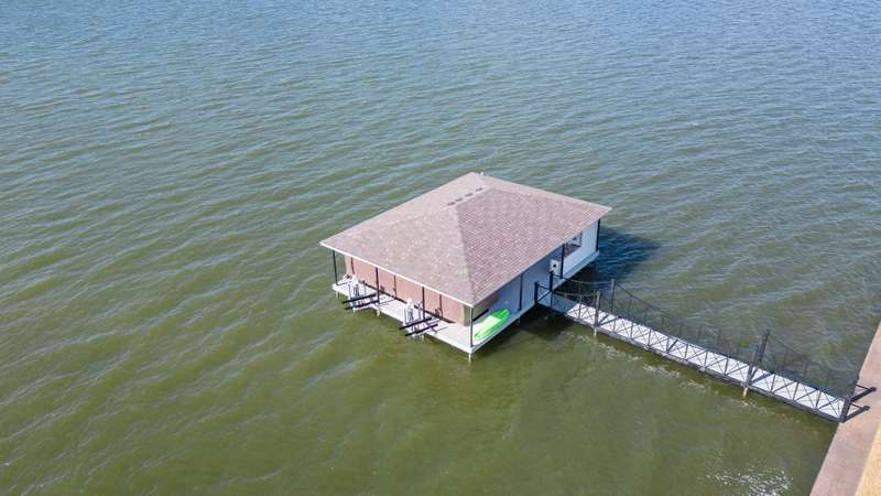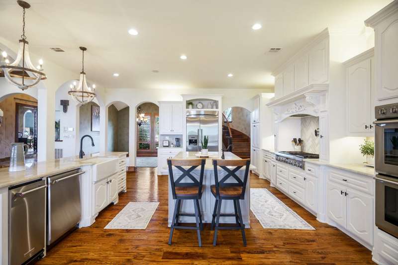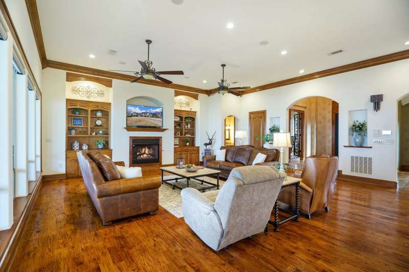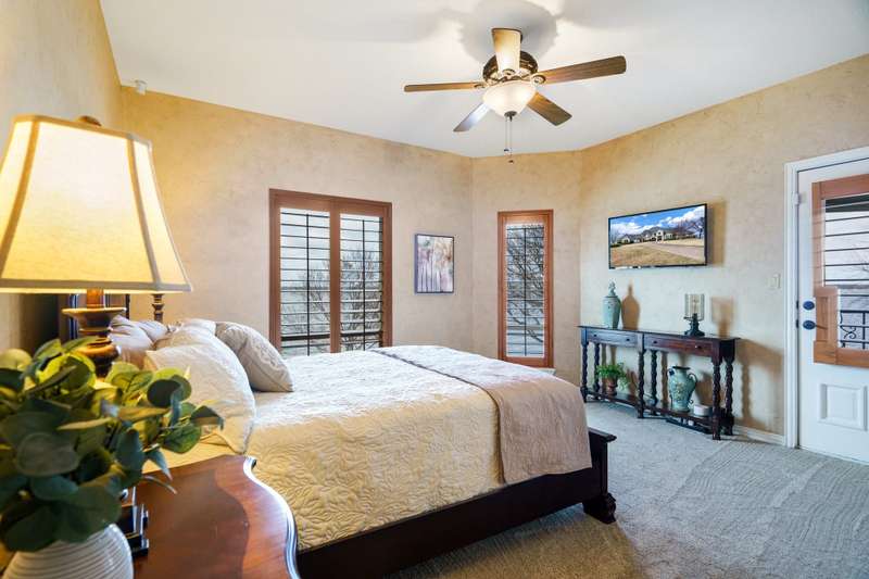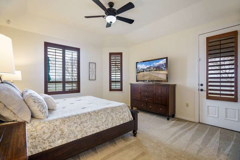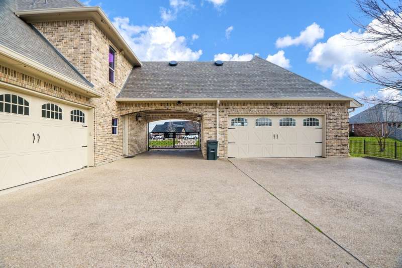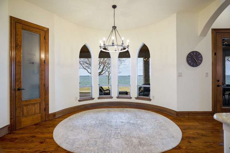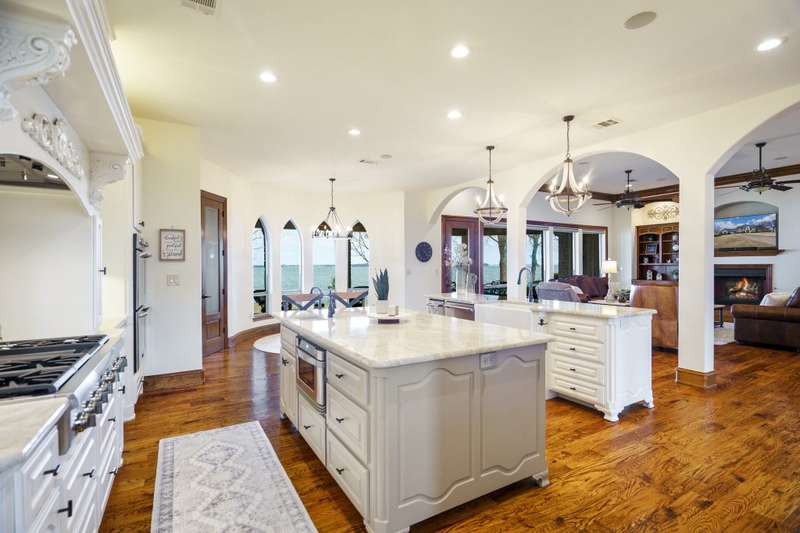 Welcome to this gorgeous two-story lake house, a true sanctuary for those who cherish waterfront living. Spanning over an acre with an impressive 426 feet of lakefront property, this home features 5 spacious bedrooms and 6 bathrooms, offering ample space for family and guests. The heart of the home is the expansive kitchen, complete with two islands and plenty of counter space. Enjoy high-end Thermador and KitchenAid appliances, as well as convenient roll-out shelves in the cabinets. The adjoining dining room and breakfast nook provide perfect settings for meals and entertaining. The inviting living room boasts built-ins, a cozy fireplace with gas logs and an electric starter, creating a warm ambiance. An office with built-ins offers a quiet space for work, while the stylish bar features a wine refrigerator and built-in wine shelvingideal for hosting gatherings. The media room is a highlight, equipped with a projector, surround sound, built-ins, a sink, and a wine refrigerator, ensuring an exceptional movie experience. Retreat to the primary bedroom, complete with a sitting area, fireplace, en-suite bath with custom closet, a separate shower equipped with two shower heads, along with a private door leading to the back porch with stunning lake views. A second primary suite on the main level also features an en-suite bath and fireplace. The outdoor living space is just as impressive, featuring a back porch with an outdoor kitchen and spiral staircase leading to a balcony. Upstairs, enjoy a game room (with a pool table that stays), built-ins, a sink, wine refrigerator, and a door leading to a balcony. Three additional bedrooms upstairs provide comfort and privacy, including one with a large walk-in closet and balcony access. The dock features two boat lifts, two jet ski lifts, a sink, refrigerator, and a retractable boat cover. With three walk-in attics for additional storage, this lake house is the ultimate retreat for relaxation and recreation.