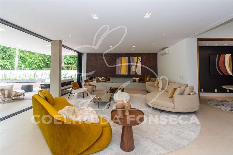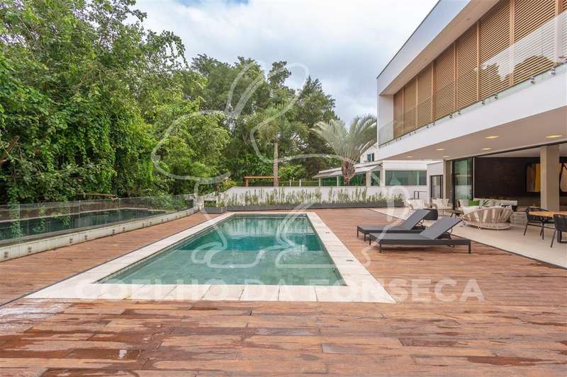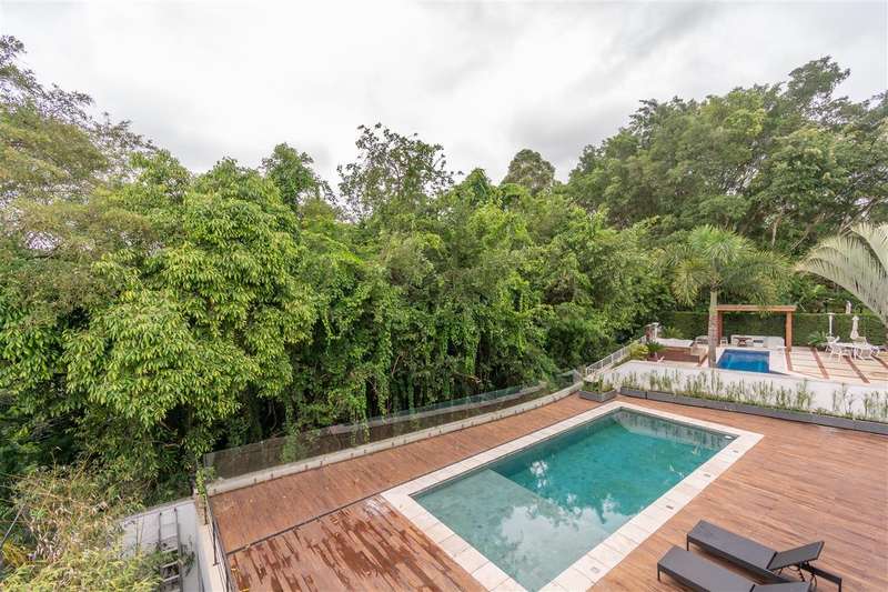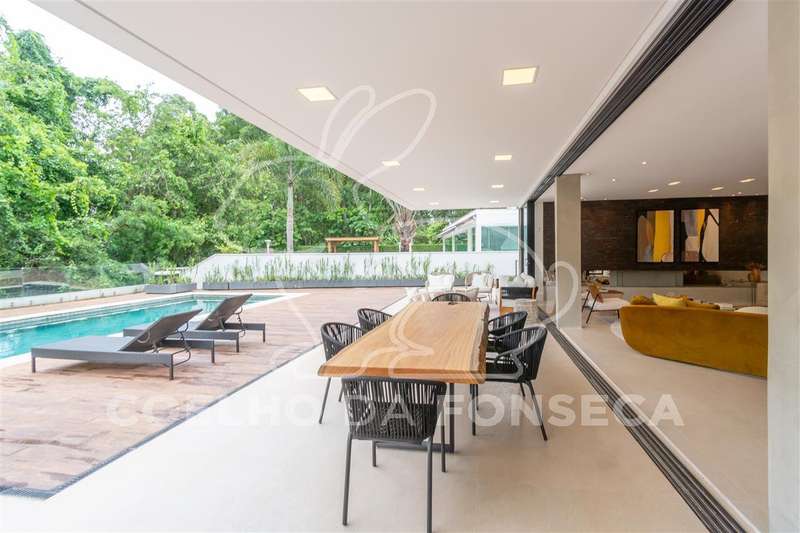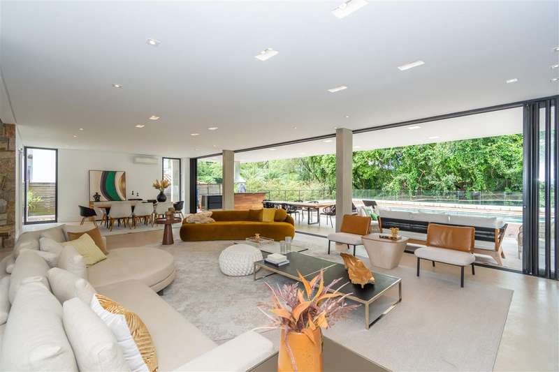 Casa moderna, Arquitetos Nitsche, com muita claridade natural, sala ampla com fundo para mata preservada, totalmente integrada a varanda e área gourmet e com muita privacidade. 5 suítes, 3 delas com linda vista para a mata, home theater e escritório. Espaços generosos: suítes, banheiros, cozinha e até a lavanderia.