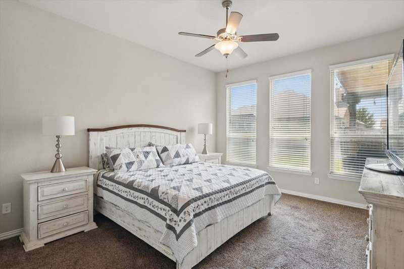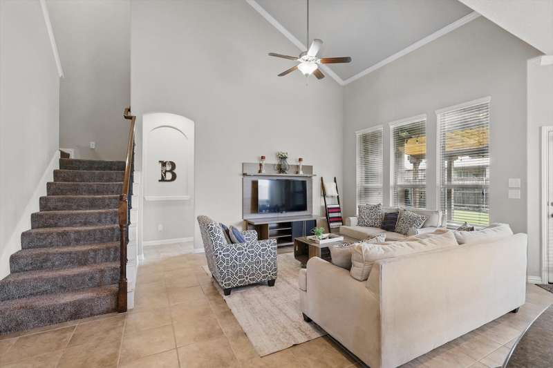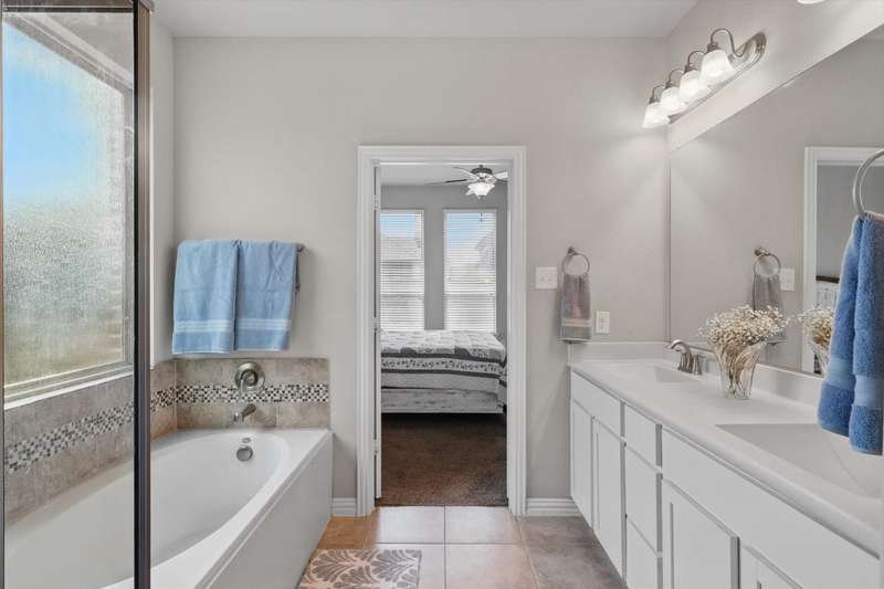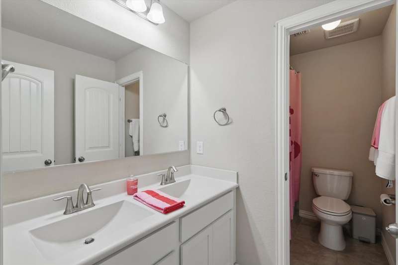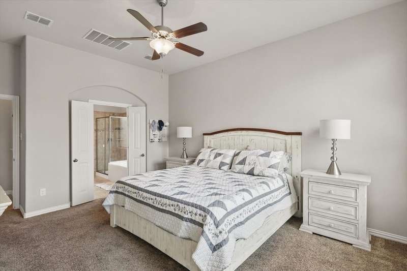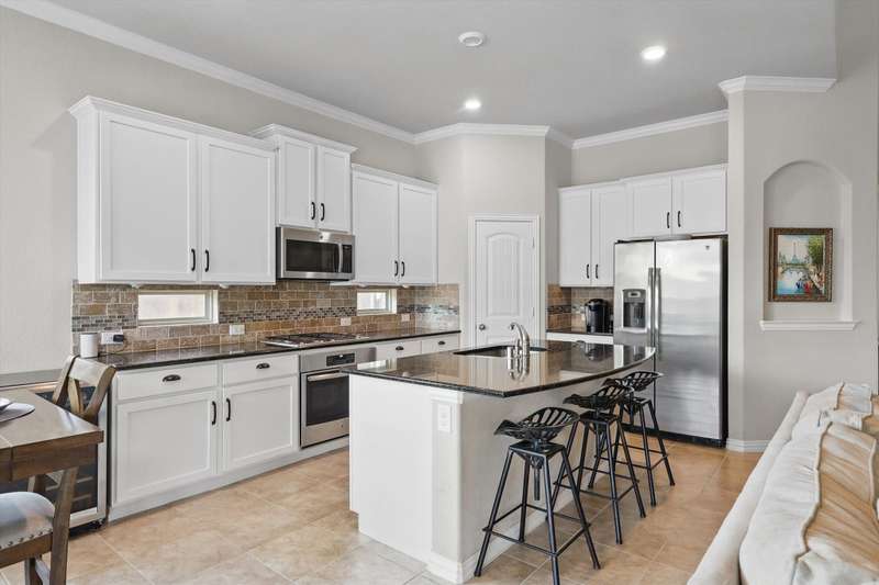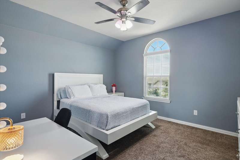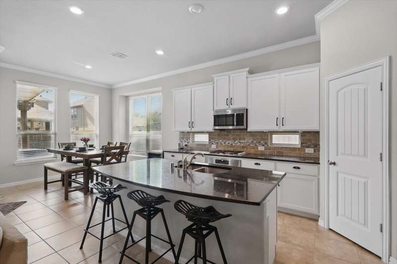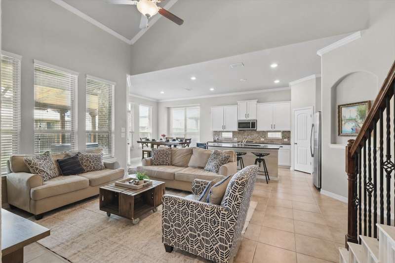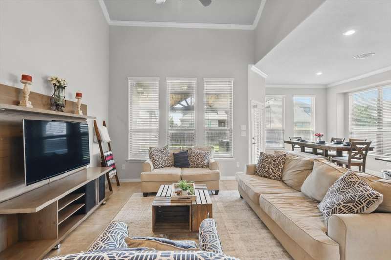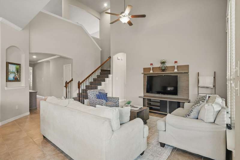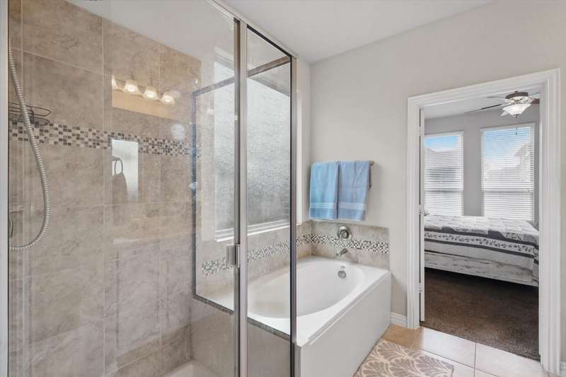 This beautiful and versatile home truly has it allincluding a private-entry Next Gen suite that offers the perfect solution for multigenerational living, guests, or a roommate. The Next Gen suite features its own exterior entrance and interior access to the main home. Inside, youll find a spacious bedroom, a full bathroom with a walk-in shower, a comfortable living area, and a functional kitchen complete with a refrigerator, microwave, and pantry. It provides independence and comfort while staying connected to the main home.As you enter the main house, youre welcomed by a bright and open floor plan. The large living area flows seamlessly into the kitchen and breakfast nook, making it perfect for everyday living or entertaining. The kitchen boasts a generous island for seating and prep space, a gas cooktop, built-in microwave, walk-in pantry, and ample cabinetry for storage. The primary suite is located downstairs and serves as a peaceful retreat. It features a spacious layout with a luxurious en-suite bathroom that includes a garden tub, separate shower, dual sinks, and a large walk-in closet. An additional bedroom and full bath are also conveniently located on the main floor, ideal for guests or home office use. Upstairs you will find a gameroom with half bath, nice size media room with speakers and projector screen, two bedrooms and a full bath. Step outside into the backyard and youll find the perfect setup for entertaining or relaxing. Enjoy a covered patio for shaded outdoor dining, a gas line ready for your grill, a sizable grassy area for play or pets, and a hot tub to unwind at the end of the day. Whether youre hosting guests, working from home, or simply enjoying time with family, this thoughtfully designed home offers comfort, flexibility, and functionality for every lifestyle. Great location walking distance to schools and community pool and clubhouse. This home is a must-see.