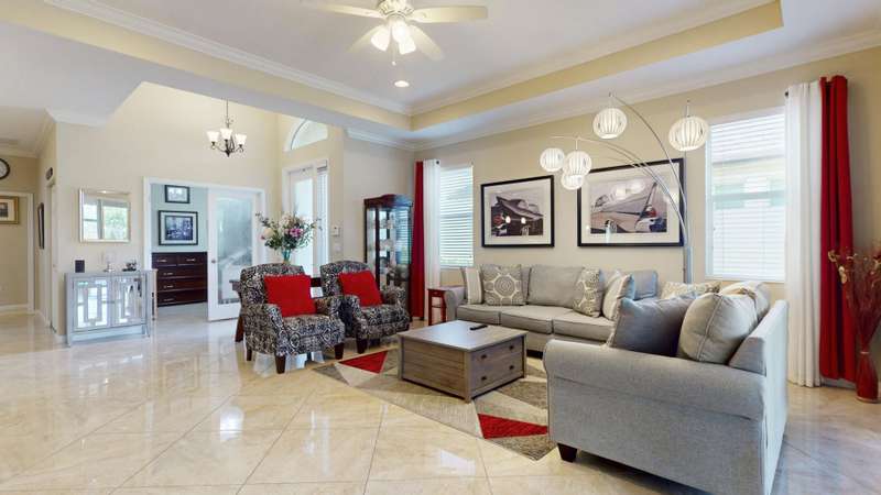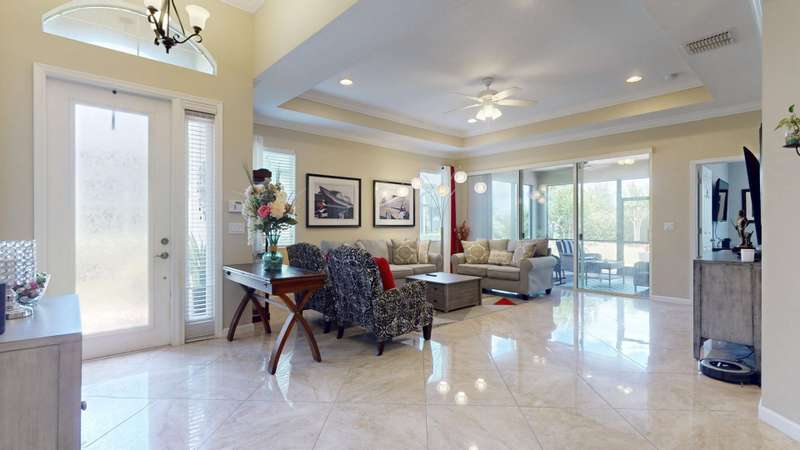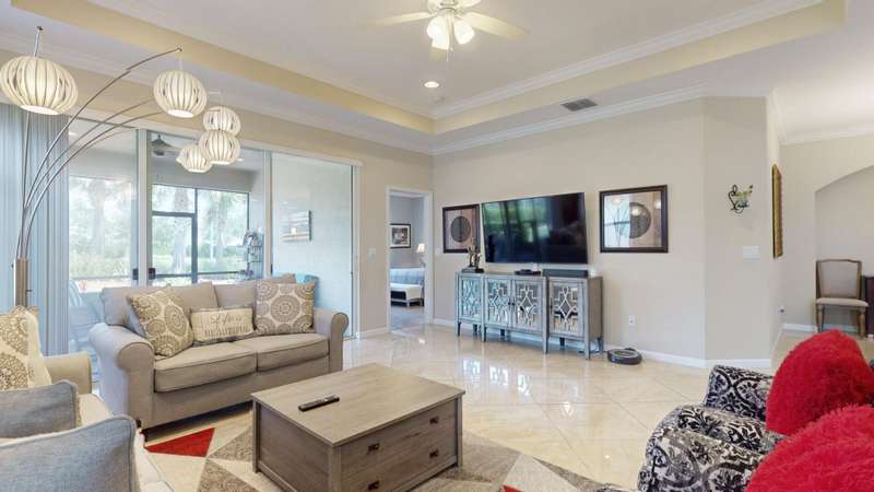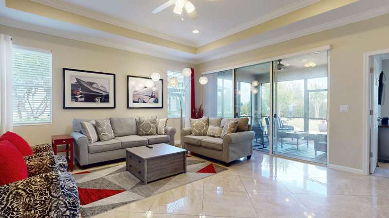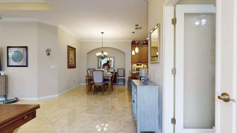 TRADITION LOCATION-AMAZING 2/2 + DEN OFFERS OVER $20,000. IN UPGRADES. UPON ENTRY OF THIS OPEN CONCEPT FLOOR PLAN YOURE WELCOMED WITH A LARGE LIVING ROOM, KITCHEN WITH AN ISLAND AND DINING AREA ALL ADORN WITH CROWN MOLDING. THE 22 GORGEOUS PORCELAIN TILE IS LAID ON A DIAGONAL THROUGHOUT WITH UPGRADED CARPETS IN THE BEDROOMS. THE HOMES INTERIOR HAS BEEN FRESHLY PAINTED-2025, THE GARAGE WAS ALSO PAINTED AND THE FLOORING HAS BEEN EXPOXIED-2025. THERE IS A SEPARATE LAUNDRY ROOM THAT LEADS TO THE 2 CAR OVERSIZED GARAGE. THERE HAS BEEN ADDITIONAL PAVERS ADDED OUT BACK AND THE PORCH HAS BEEN SCREEN ENCLOSED. THE COMMUNITY OFFERS GATED SECURITY, RESORT POOL, TENNIS, PICKLE BALL, AND A DOG PARK. CLOSE TO TRADITION HOSPITAL, SCHOOLS, RESTAURANTS AND SHOPPING.