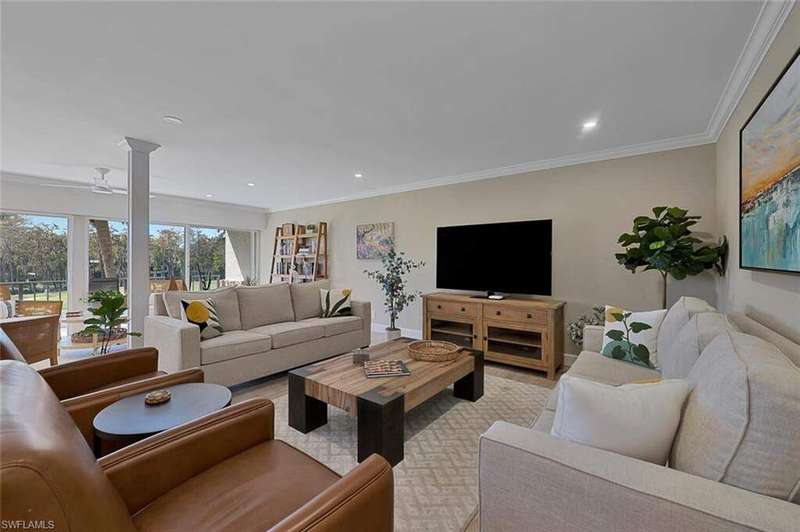 Move right into this remodeled turn-key furnished condominium contemporary residence offering breathtaking lake to green views overlooking the nine-hole. Completely redesigned with meticulous attention to detail, this home epitomizes elegance and sophistication. Immediate Full Golf Member at Wilderness with purchase of this property. Step inside to discover a light-filled open-concept floor plan featuring a gourmet kitchen with quartz countertops and a subway tile backsplash, stainless steel appliances, vinyl flooring, crown molding, and custom White Shaker Cabinetry. Electric Hurricane shutters. Residents will also enjoy access to the newly constructed State-of-the-Art 5 Star Clubhouse and practice facility, making this property the ultimate haven for golf enthusiasts. Golf cart and cart garage are included and located adjacent to your assigned covered car parking. This gated paradise is set within a 200-acre forest with stunning landscaping and mature trees overhanging roadways. It offers unlimited golf on an 18-hole Arthur Hills course, 5 Pools, 4 tennis courts, bocce, croquet, and a dog park. It's located just minutes away from charming shopping and dining at 5th Avenue and Old Naples. Purchase of a Wilderness Country Club membership is required and immediately available.