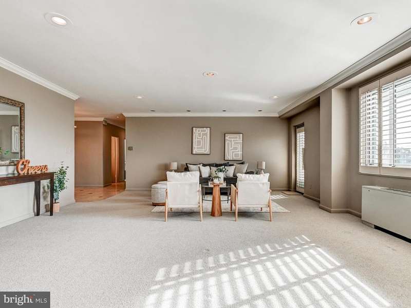 You will love this updated, bright & spacious Penthouse coop with large rooms , private laundry room & 2 huge storage rooms! Move right into this updated 3-bedroom or 2 Bedroom & den home in secure, full service elevator building with receptionist & doorman. The marble entrance foyer leads to the spacious living room & dining room with crown moldings, plantation shutters, recessed lighting & access to a large private balcony. The bright 22 ft. gourmet eat-in kitchen has hardwood floors, a large window w/plantation shutters, granite counters, stainless appliances & double wall oven. The primary bedroom includes a large walk-in closet & beautiful private full bath w/shower. All 3 bedrooms have plentiful lighting and the 3rd Bedroom is currently used as a den. The powder room and 2nd full bath are also renovated and have marble & granite counters. The laundry room has a washer & dryer with laundry tub & is conveniently located on the bedroom hallway. With decorator lighting & plantation shutters throughout, this is a wonderful property! The coop monthly fee includes taxes, heat, AC, basic cable, water as well as a Party Room, Exercise Room & more!. What a great value! Don't miss seeing this one!