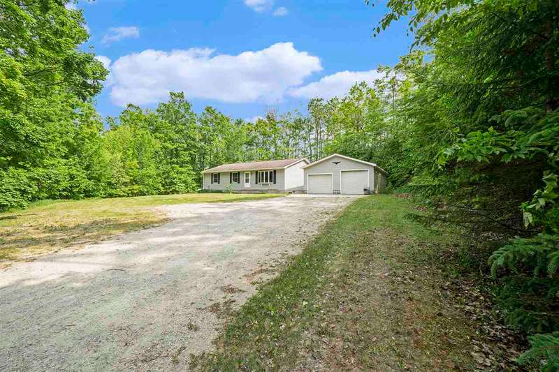PRICE IMPROVEMENT!!! Petoskey Country Living on 40 Acres. Discover the perfect blend of privacy, space with this solidly built 3-bedroom, 2-bath ranch-style home situated on 40 acres along newly paved Roy Road in Petoskey. This single-story home offers main-floor living and includes a full unfinished basement with high ceilings--ideal for creating additional living space to suit your needs. You'll find plenty of room for vehicles, gear, and hobbies with a generous 24' x 40', 4-car garage and another 18' x 24' pole barn--perfect for storing tools, toys, and outdoor equipment. The property is a nature lover's paradise, surrounded by maple trees and visited frequently by deer, turkey, and other wildlife. Located less than a quarter mile from hundreds of acres of state land and recreational trails, an outdoor enthusiast's dream--whether you enjoy hiking, hunting, snowmobiling, or simply spending time in nature. Recent updates include a new roof, boiler, and water heater all within the past four years providing peace of mind and a solid foundation to build upon. While the home invites your personal touches , it offers comfortable living right from the start.