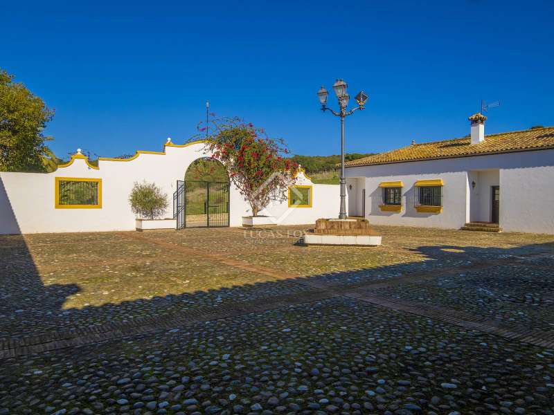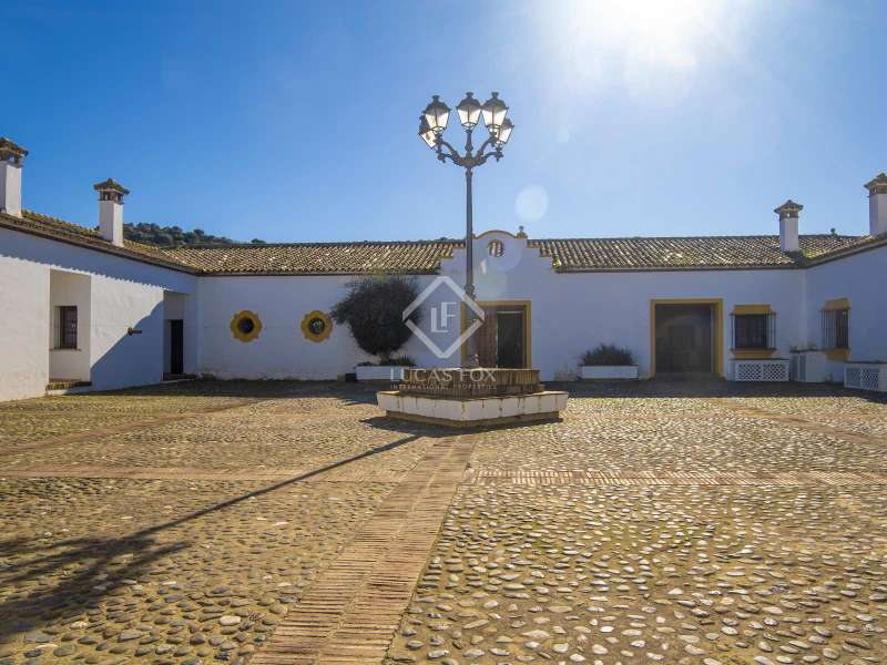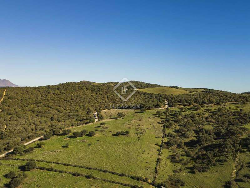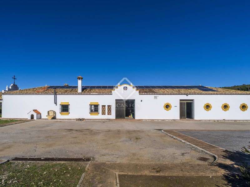 Welcome to "La Morisca," an extraordinary estate exclusively listed for sale by Lucas Fox International Properties. Situated in the scenic landscapes of Jimena de la Frontera and San Martin del Tesorillo, Cádiz, just a 20-minute drive from Sotogrande;, this one-of-a-kind property spans 363 hectares of picturesque pasture and woodland. Originally devoted to leisure; hosting large events, weddings, bullfighting, horse riding, hiking, and hunting; "La Morisca" boasts practical facilities for all types of outdoor enthusiasts and pure leisure, including a bullring with corrals and pens, a large country house, horse riding facilities, hunting premises, and two helicopter landing pads. At the core of the estate stands a U-shaped Andalusian-style country house, covering an impressive 1,385 m² on a single floor. The farmhouse surrounds a paved courtyard and includes three separate dwellings, a chapel, a wine cellar-lounge, kitchens, offices, storerooms, and two covered porches. All seven habitable spaces are equipped with air conditioning and fireplaces for comfort. Large covered terraces and gardens surround the property, offering stunning panoramic views into the valley and to the mountain. In addition to the residential structures, the estate features practical agricultural buildings, notably a substantial 1,200 m² warehouse with two apartments. Two large water tanks, each with a 5,000 m3 capacity and electric water supply from solar panels and generators contribute to the estate's self-sufficiency, along with a freshwater lake covering more than 17,000 m². Apart from its captivating outdoor charm and extensive land, every parcel within the estate is fully enclosed with hunting mesh, ensuring safety and security. The property features more than 40 kilometres of meticulously maintained internal dirt roads, facilitating convenient access to all areas. A distinctive feature of "La Morisca" is the inclusion of a small game preserve named "San Miguel." The property accommodates 9 wooden sentry boxes, standing at about five metres, designed for both hunting and sightseeing the estate's wildlife (Such as a large variety of birds, deer, wild boar, and other species). Regarding other uses for the farm land, it can be modified for cultivating avocados and other subtropical plants. And as for other purposes for the estate, it could be renovated into a boutique hotel with spa and sport facilities, a secluded retreat, or even transforming it into a private events venue. This property stands as a pinnacle of luxury living in Andalusia, offering a retreat for those who appreciate nature while being only a 10-minute helicopter ride away from Marbella and its surrounding. Please contact us for further information.