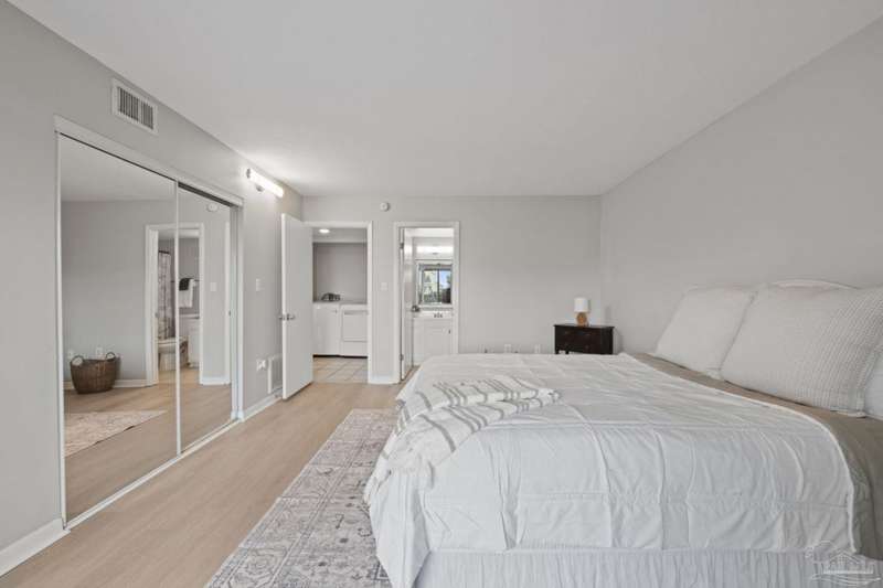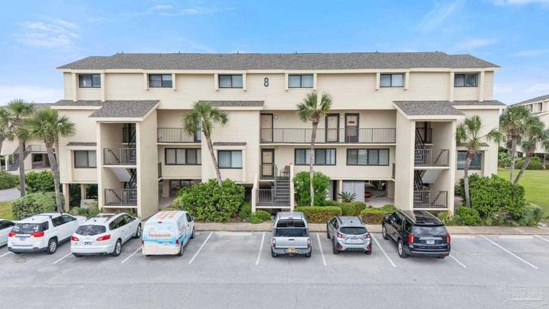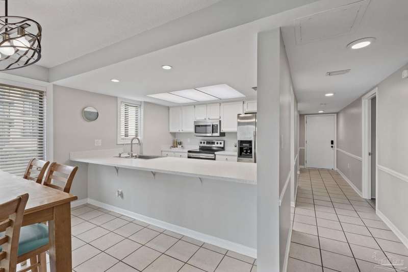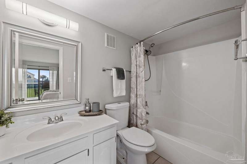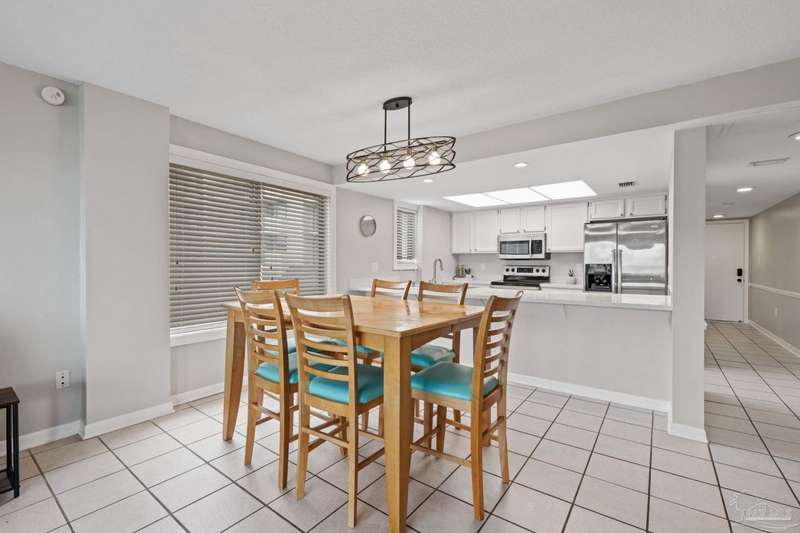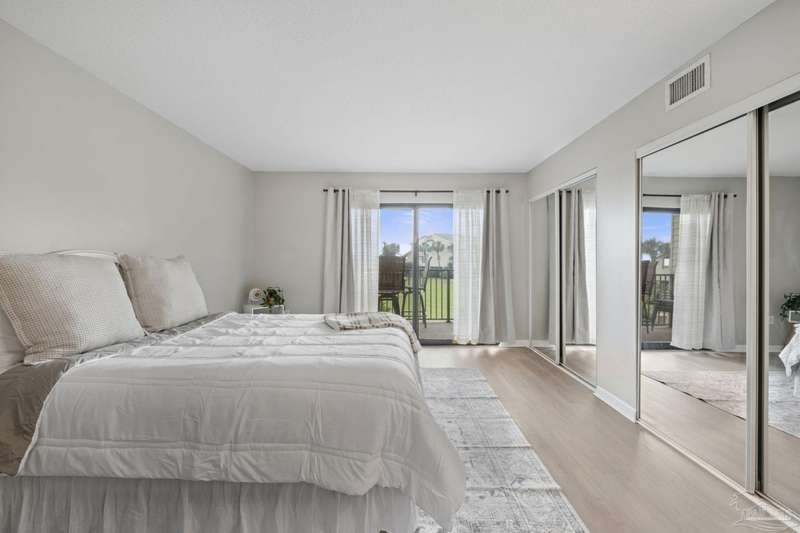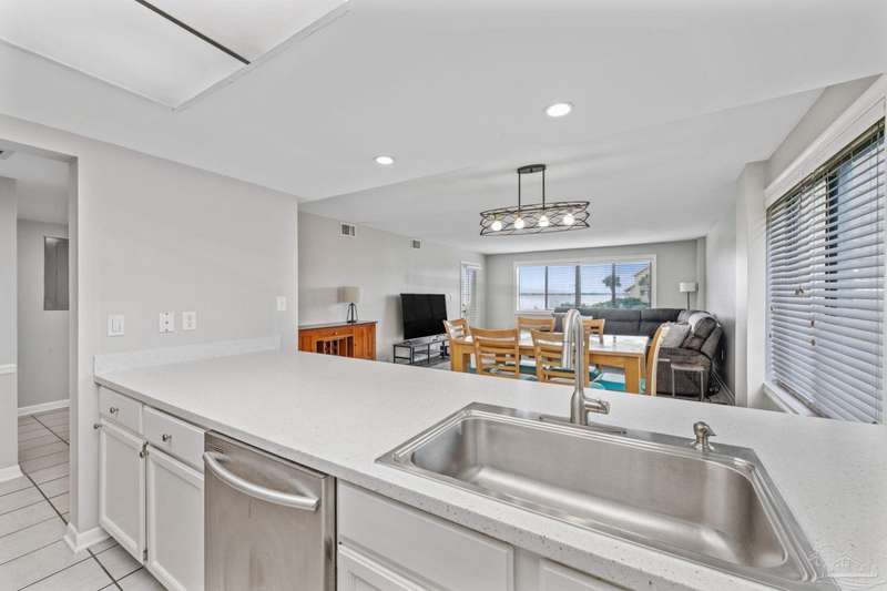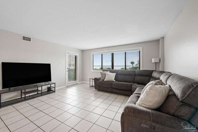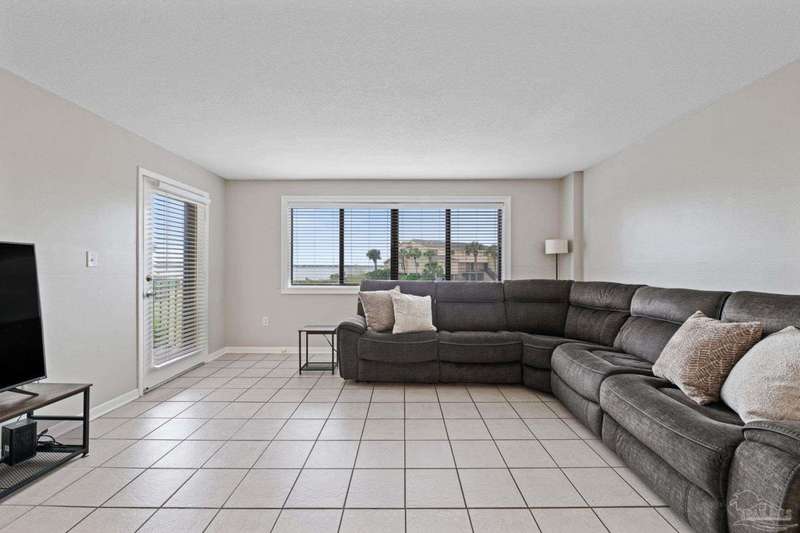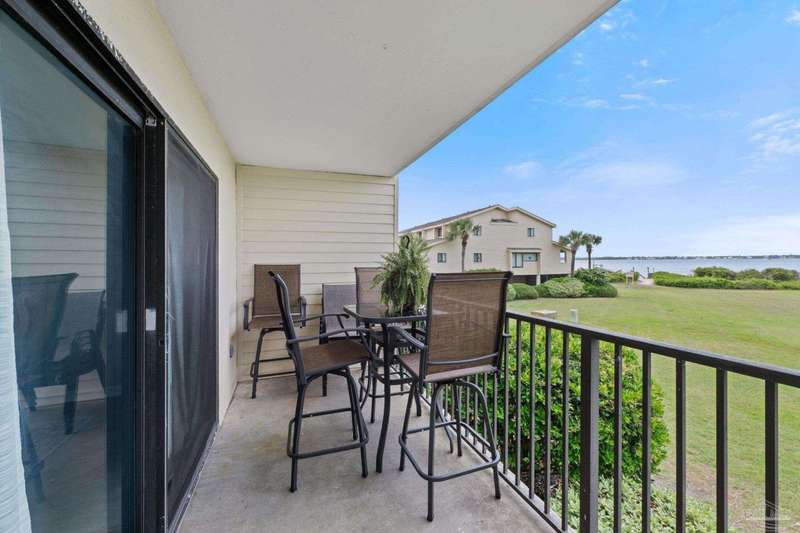 Welcome to this fully furnished, freshly painted, single-story 3-bedroom, 2-bath corner unit-thoughtfully updated and designed to impress. This light-filled condo features new flooring in the bedrooms, neutral tile in main living areas, and extra windows showcasing breathtaking Sound views. Whether you're looking for a turn-key investment, primary residence, or vacation retreat, this home delivers it all. The bright and spacious living and dining areas flow seamlessly into an updated kitchen boasting elegant wood cabinetry, complementary espresso cabinetry on the breakfast bar, sleek quartz countertops that extend as backsplash, a single-bowl stainless sink, and modern stainless-steel appliances. Wake up to waterfront views in the primary suite, complete with balcony access-perfect for morning coffee or evening cocktails. The master bedroom comes with an en-suite bathroom. The split floor plan includes two generously sized guest bedrooms with new flooring and ample closet space, quartz kitchen countertops, new water heater (2025), and HVAC (2024). Situated in the amenity-rich Santa Rosa Dunes community, residents enjoy access to a clubhouse, swimming pool, tennis courts, fitness center, private beach, and pier-with the Gulf's white sand beaches just steps away.