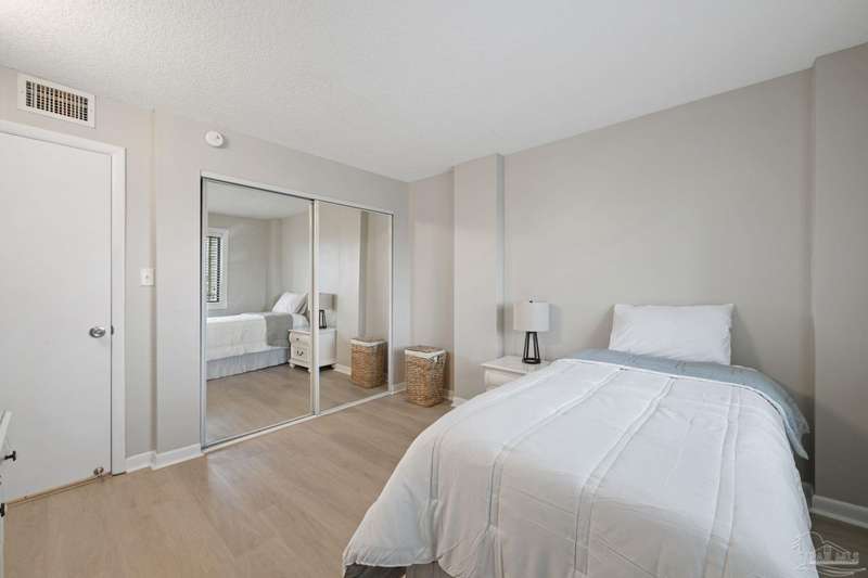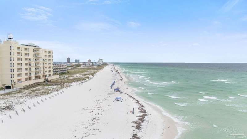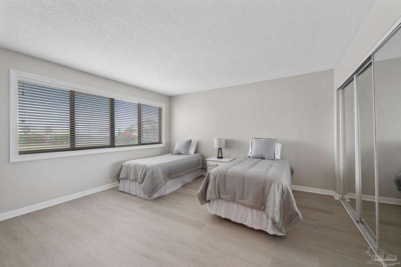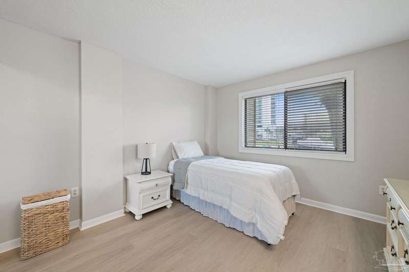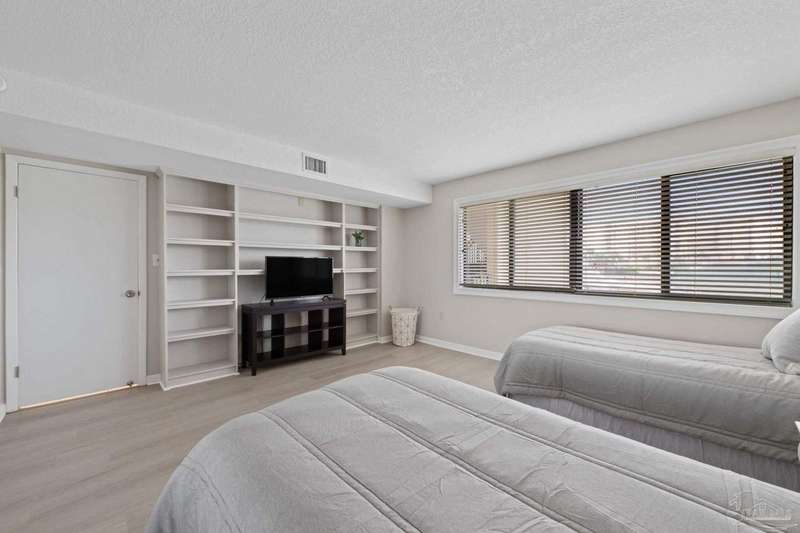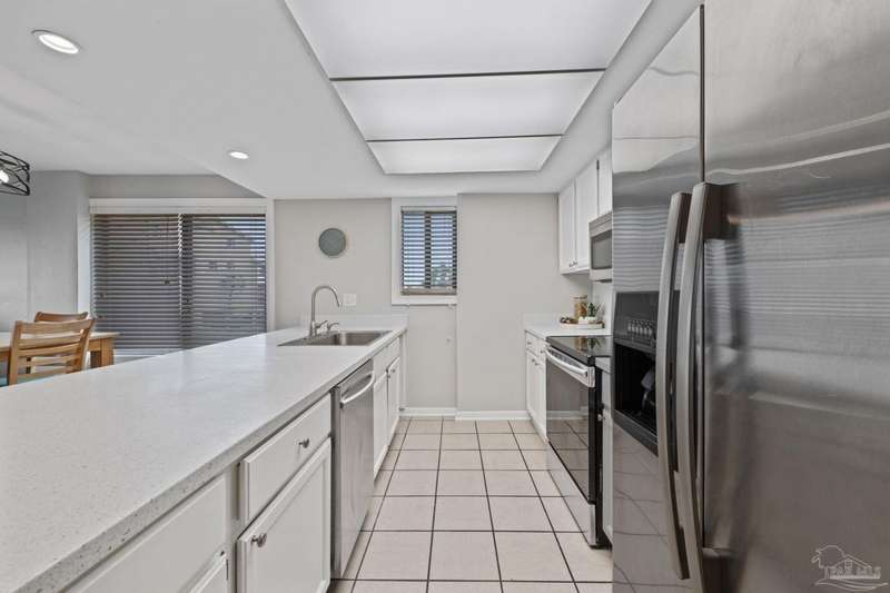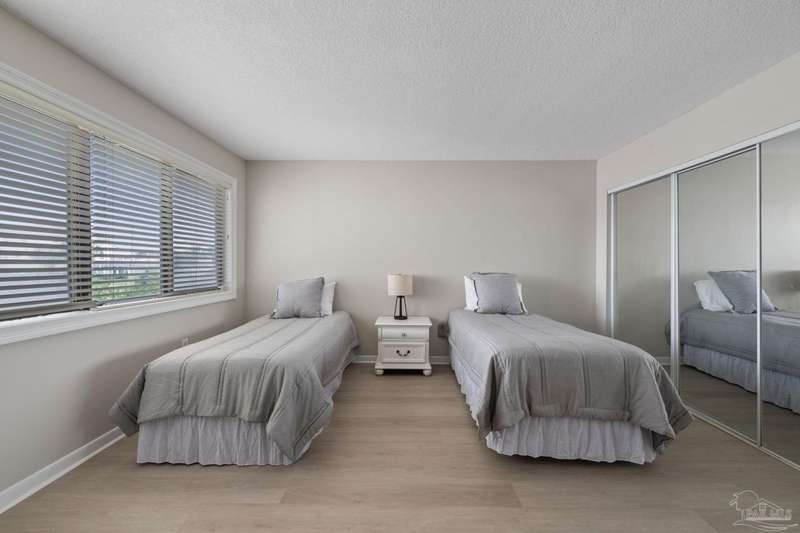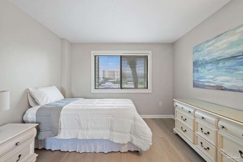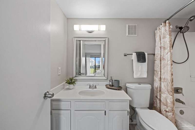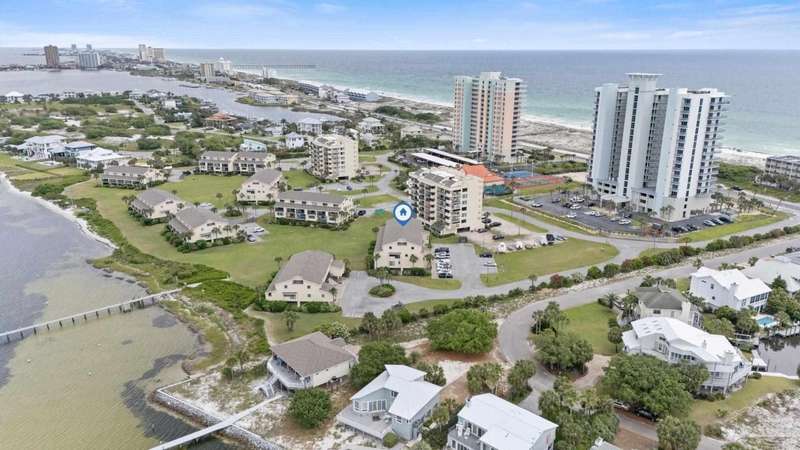 Welcome to this fully furnished, freshly painted, single-story 3-bedroom, 2-bath corner unit-thoughtfully updated and designed to impress. This light-filled condo features new flooring in the bedrooms, neutral tile in main living areas, and extra windows showcasing breathtaking Sound views. Whether you're looking for a turn-key investment, primary residence, or vacation retreat, this home delivers it all. The bright and spacious living and dining areas flow seamlessly into an updated kitchen boasting elegant wood cabinetry, complementary espresso cabinetry on the breakfast bar, sleek quartz countertops that extend as backsplash, a single-bowl stainless sink, and modern stainless-steel appliances. Wake up to waterfront views in the primary suite, complete with balcony access-perfect for morning coffee or evening cocktails. The master bedroom comes with an en-suite bathroom. The split floor plan includes two generously sized guest bedrooms with new flooring and ample closet space, quartz kitchen countertops, new water heater (2025), and HVAC (2024). Situated in the amenity-rich Santa Rosa Dunes community, residents enjoy access to a clubhouse, swimming pool, tennis courts, fitness center, private beach, and pier-with the Gulf's white sand beaches just steps away.