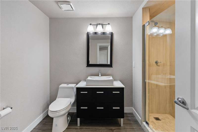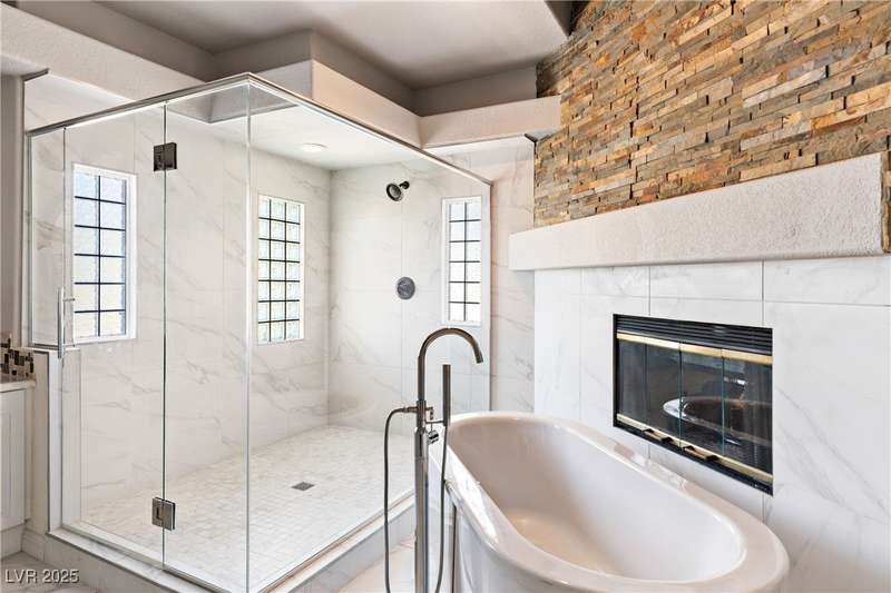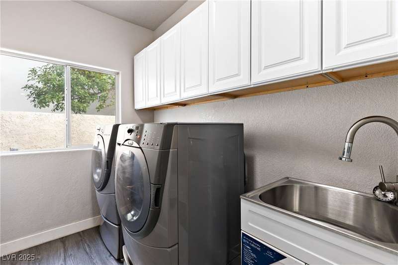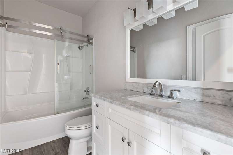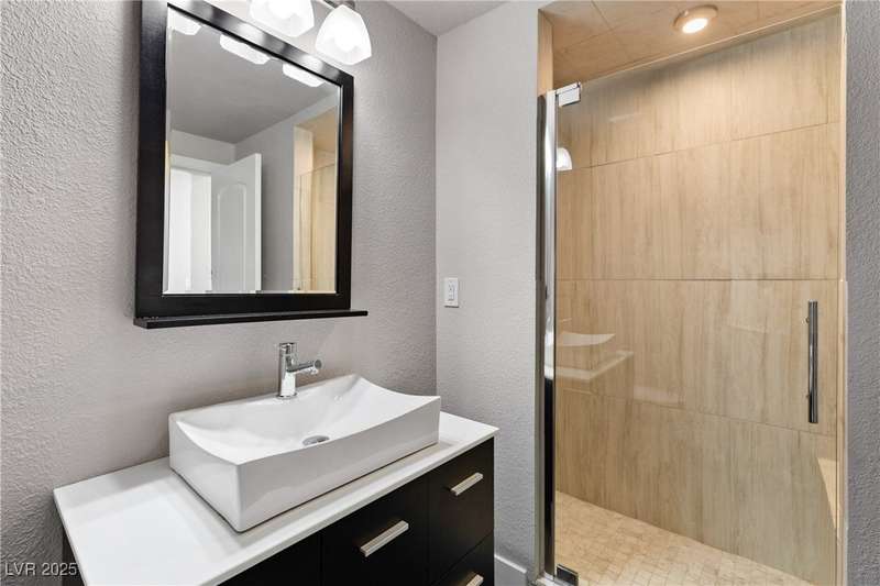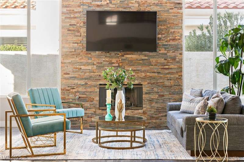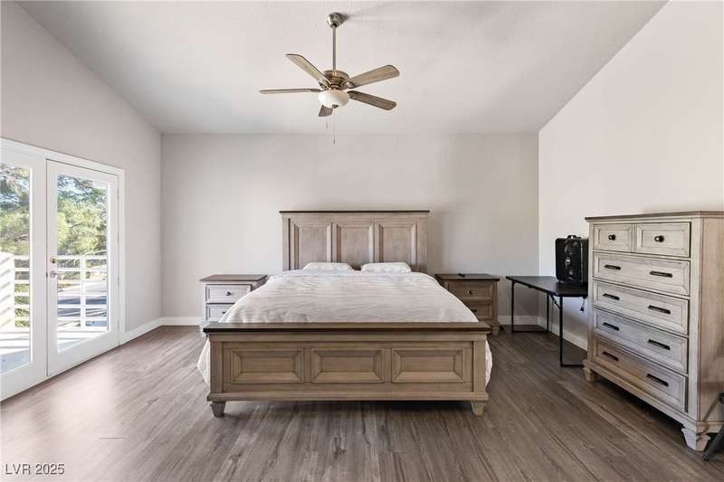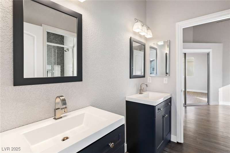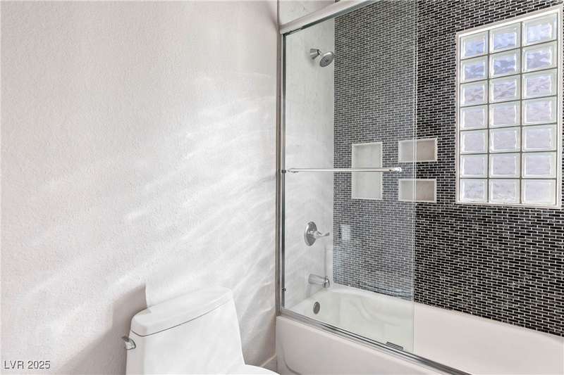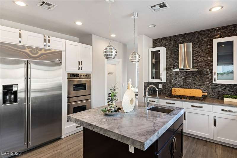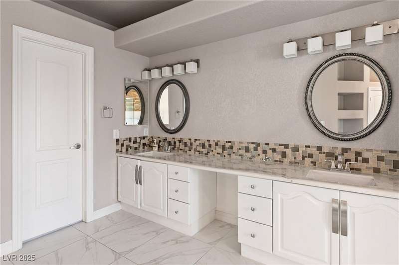 Only 450 feet to the lake, this 5-bedroom, 4-bath, 3-car garage home sits in Desert Shores, one of Las Vegas’ most sought-after communities known for its mature landscaping, trails, and rare lake access. Features two primary suites, including a downstairs primary with shower and an upstairs primary with balcony overlooking the pool. Renovated in 2021, the kitchen offers white cabinets, a walk-in pantry, chef’s refrigerator, stainless steel appliances, and a large double-thickness granite island. Two 2-way fireplaces (one between the breakfast nook and family room, another between the primary bedroom and bathtub) add warmth and style. The backyard is built for entertaining with a covered patio, zero-maintenance turf, and an inground pool with spa and waterfalls, plus no rear neighbor. Harbor Cove residents enjoy three lakes, a swimming beach, clubhouse, picnic area, and lakeside walking paths in a peaceful, well-established neighborhood.
