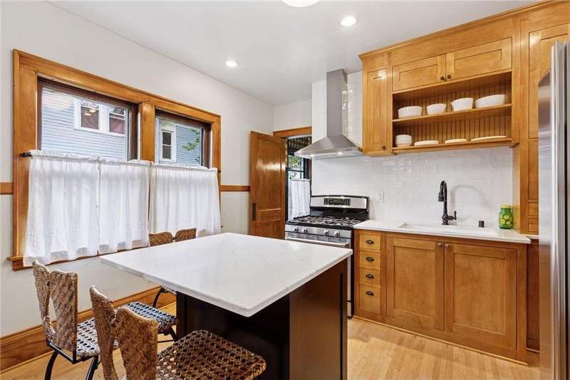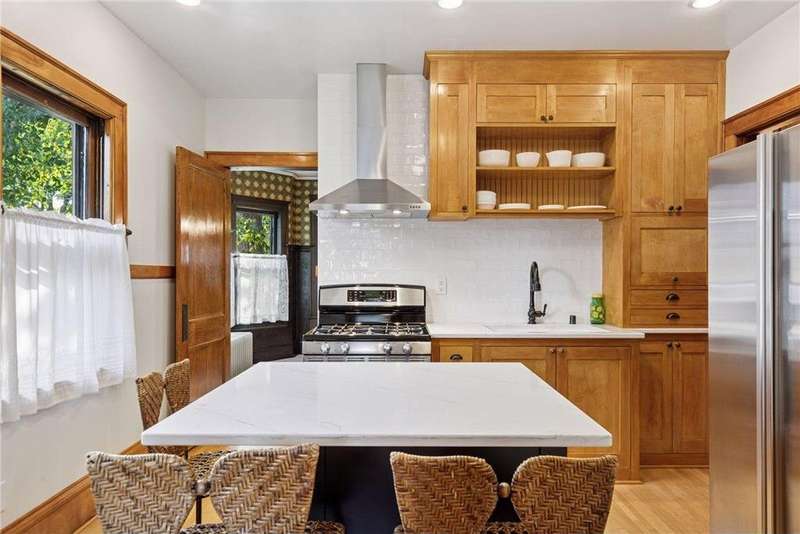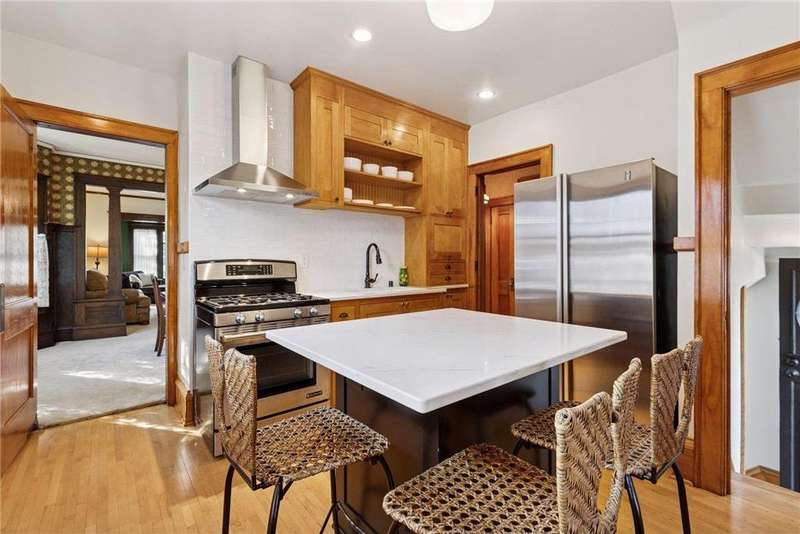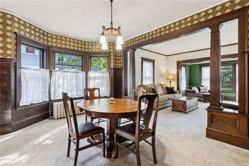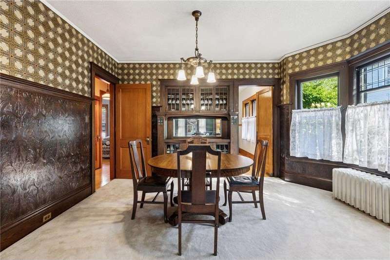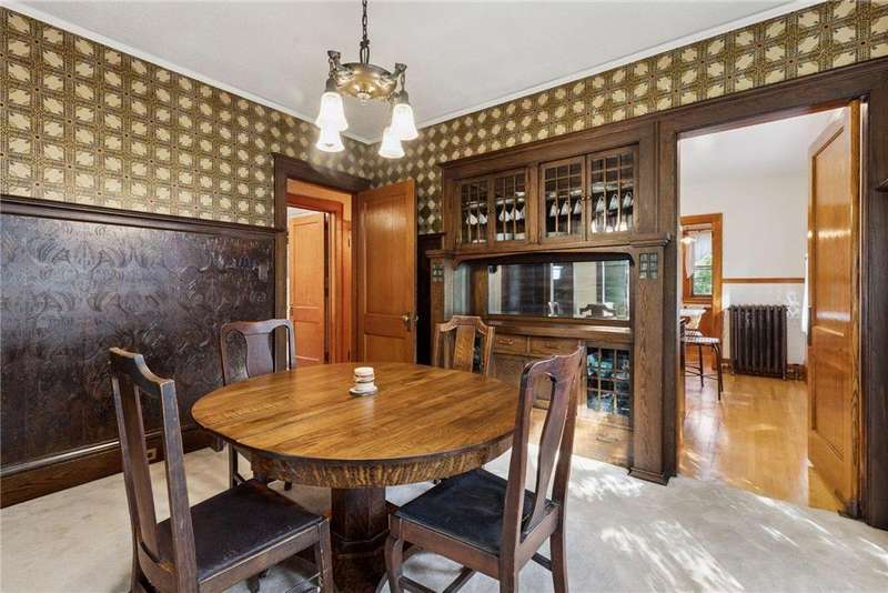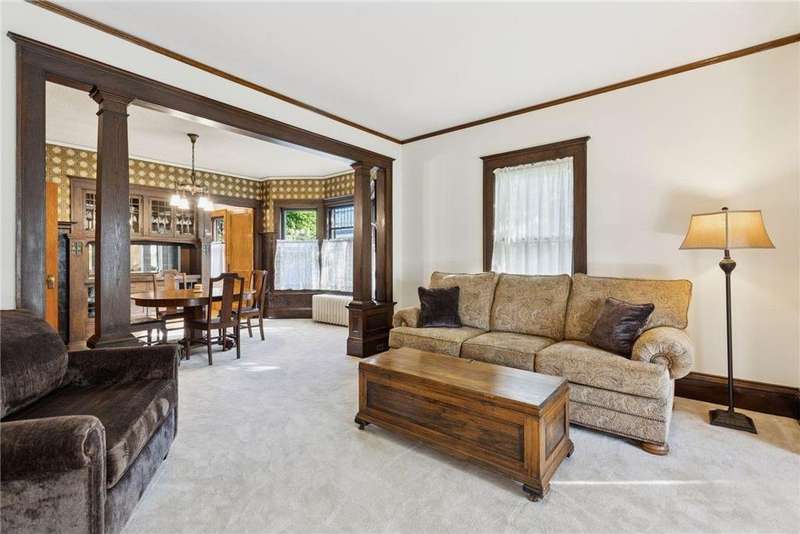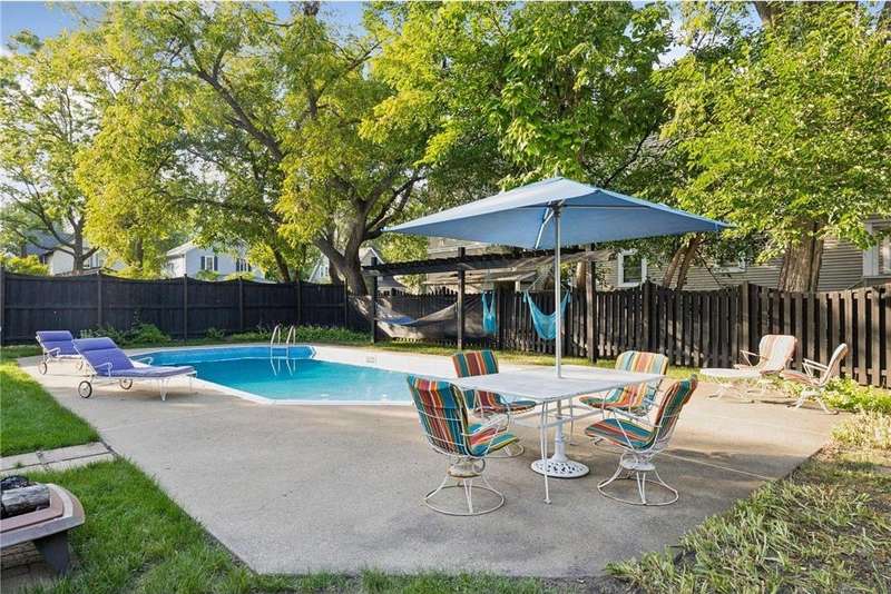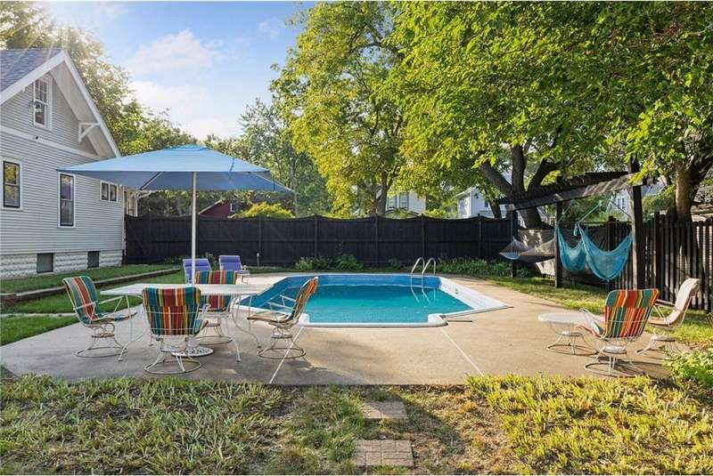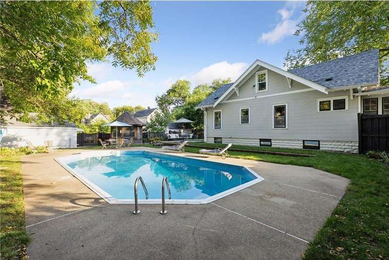 A stunning Arts & Crafts gem with an art deco touch, available for the first time in over 30 years! You've likely passed by this home countless times, unaware of the hidden treasures inside. A spacious main floor includes a sunroom, porch, foyer, formal living & dining rooms. The upper level features a beautifully renovated second-floor suite, currently used as a family room. The kitchen is a true centerpiece with custom cabinets made to match the original cabinets found in the walk-in pantry. A center island was added for additional seating and a dishwasher. The seller has carefully preserved the original charm, including original pillars and built-ins, while adding modern conveniences. Outside, the double lot surrounded by a beautiful wood privacy fence boasts a paver patio, gazebo & in-ground pool. There is plenty of off-street parking & storage space with the single & oversized double garage.