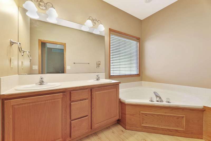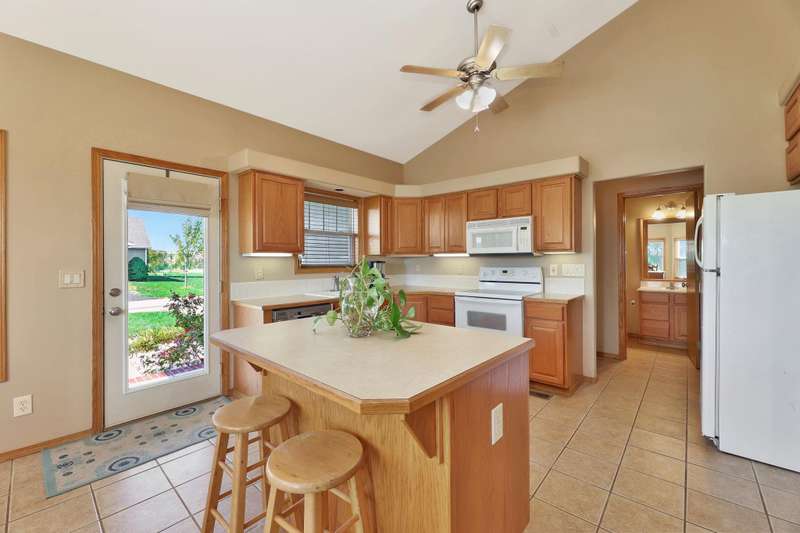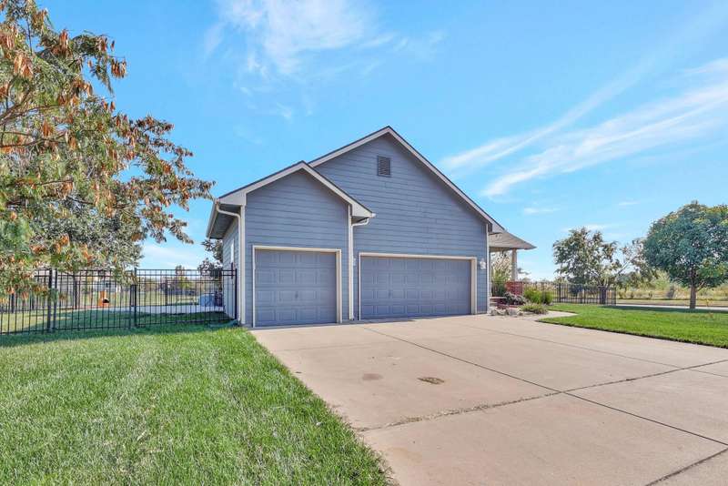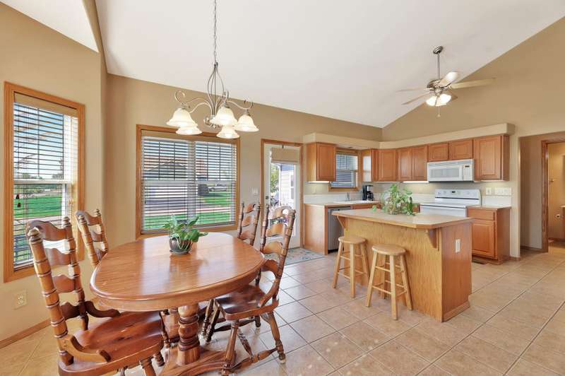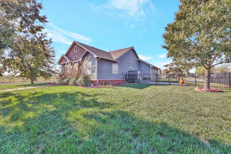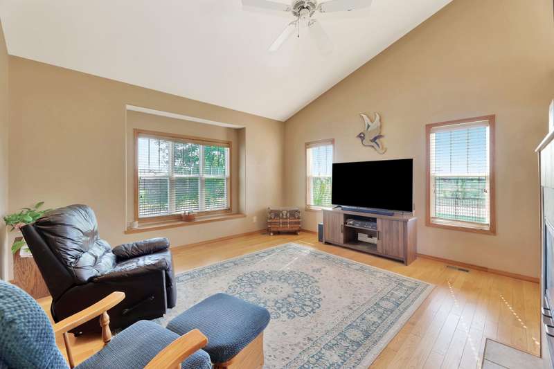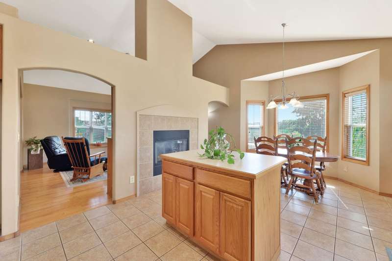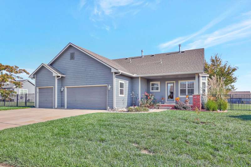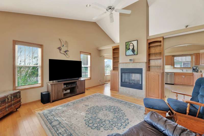 Tucked within a picturesque neighborhood of newly built homes brimming with character, this corner-lot beauty is full of charm. A covered front porch sets the tone for the inviting interior. Inside, the living room impresses with vaulted ceilings, hardwood floors, and a cozy two-way gas fireplace framed by custom built-ins. The spacious eat-in kitchen offers an island and plenty of space for casual dining. In the primary suite, youll find vinyl flooring, dual sinks, a soaker tub, separate shower, and walk-in closet. A second bedroom and full hall bath round out the main floor. The lower level extends the living space with a large rec/family room, third bedroom, full bath, laundry area, and abundant storage. Outdoors, enjoy relaxing on either of the covered porches while overlooking the large fenced yard. A three-car garage completes this delightful home.