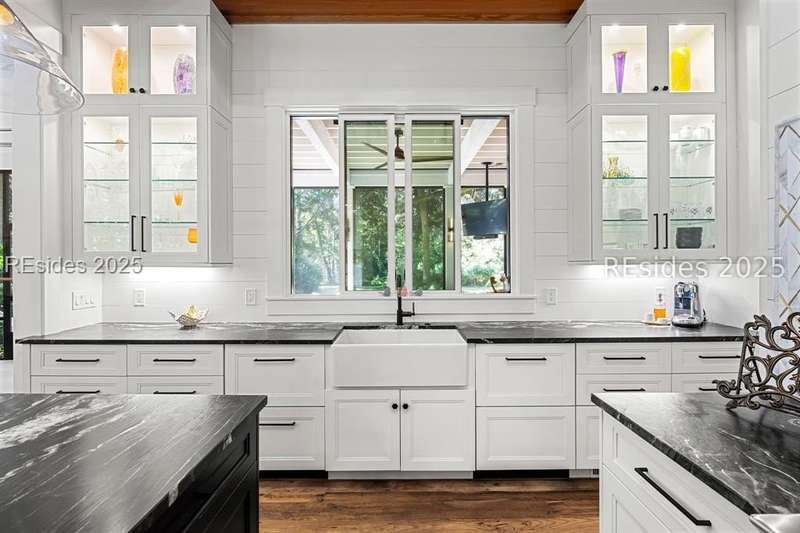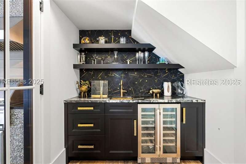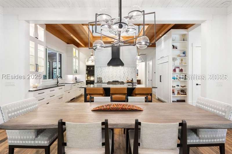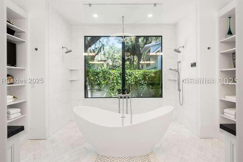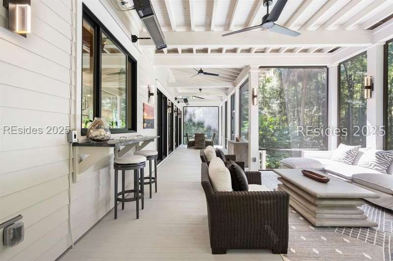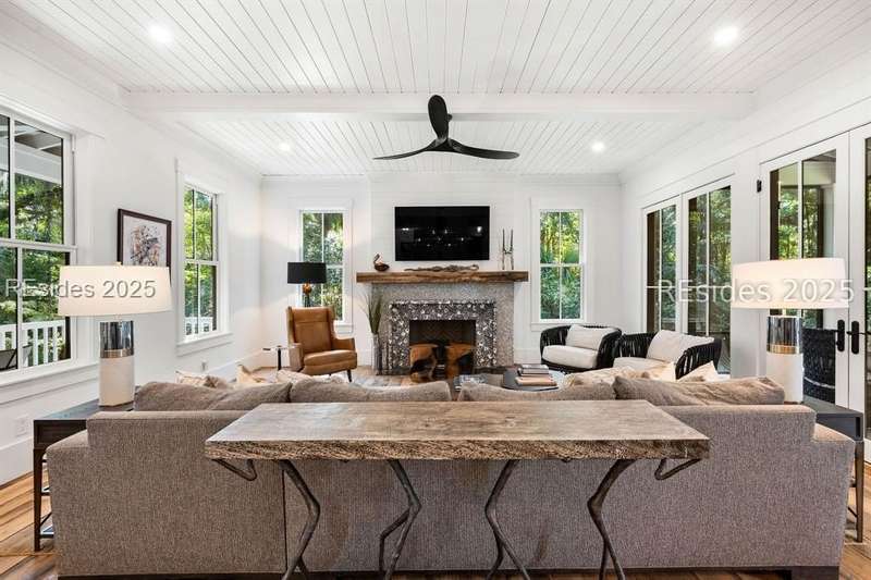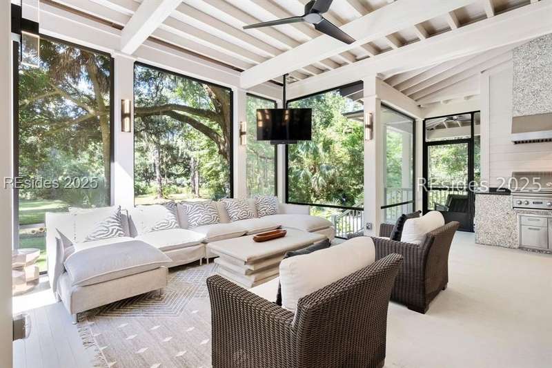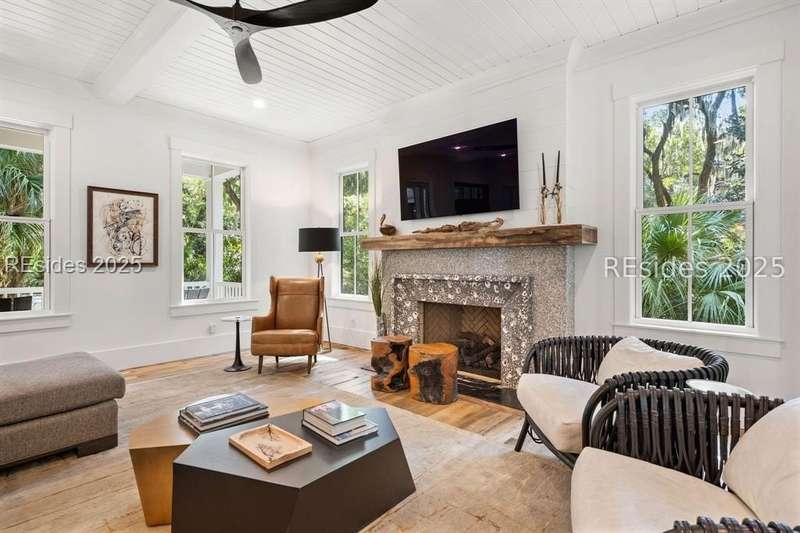Where contemporary elegance meets timeless Lowcountry beauty. This 4-bedroom, 4 1/2-bath, 3,435-sq-ft Spring Island masterpiece is a seamless fusion of modern design and the soulful charm of the Lowcountry, perfectly positioned among centuries-old Live Oaks. Built in 2021, this home was honored with the coveted Lighthouse Award in all four categories - Best Kitchen, Best Bathroom, Best Exterior, and Best Overall - a true testament to its exceptional craftsmanship and design. Inside, light pours into open, inviting spaces. The chef's kitchen with premium appliances and an entertainer's layout flows into a great room anchored by a striking tabby fireplace. Walls of windows invite the outdoors in, while an expansive, heated screened porch, complete with outdoor grill, kitchen pass-through, and TV, creates the ultimate gathering space for any season. The first-floor primary suite is a serene retreat, featuring a spa-inspired bath with the rare luxury of both indoor and outdoor showers. Upstairs, each guest suite enjoys its own private bath, offering comfort and privacy. An elevator connects every level, ensuring effortless living. The grounds are a work of art - front and rear water gardens shimmer in the sunlight, while a tranquil backyard water feature sets the stage for evenings around the fire pit under a canopy of stars. Conveniently located to both the River House and Golf House, you'll enjoy Spring Island's unmatched amenities with over 3,000 acres of preserved beauty, an Arnold Palmer golf course, equestrian facilities, tennis and pickleball, deep-water docks, and miles of scenic trails. More than a home, this is an experience - crafted for those who value beauty, nature, and the art of living well.