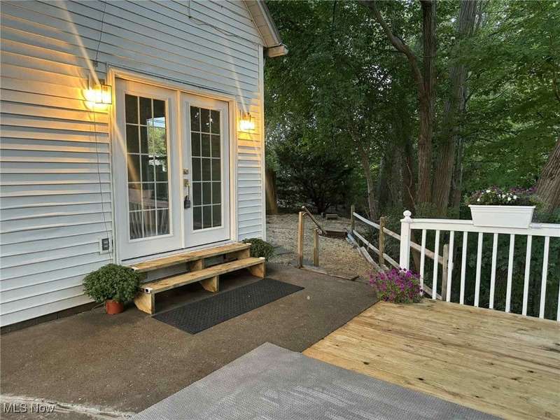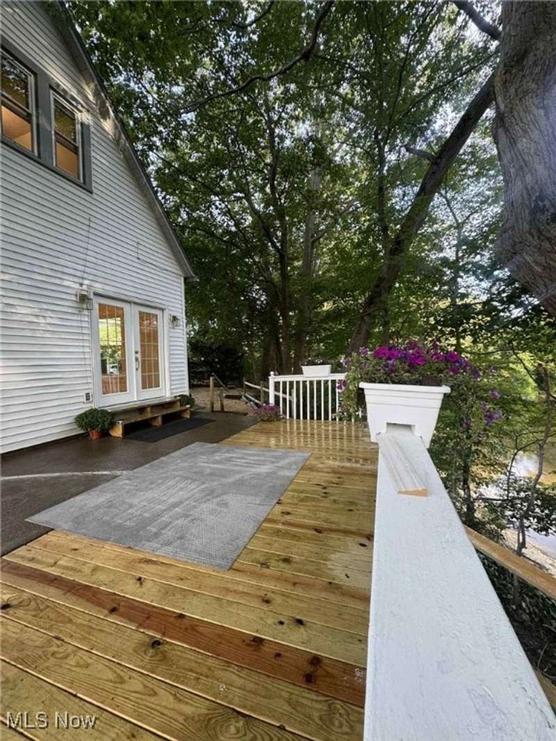Updated 2 bedroom vinyl sided colonial with over an acre lot with serene views of the river from the back deck. There is new flooring throughout, LVT in the kitchen, dining room, living room and bathroom. Carpet in the bedrooms. The kitchen features all new cabinets, plumbing, electrical and lighting fixtures, range and refrigerator. There are French doors leading from the dining room to the new back deck where you can relax and enjoy the natural beauty of the treed lot and river views. The bathroom has been completely remodeled with a new toilet, vanity and tub surround. The basement has been waterproofed and has a warranty and service contract where they come every six months with Ohio Basement Systems. The hot water tank is new as well. Septic has been serviced and cleaned with new motors installed. Storage shed located in the back driveway.