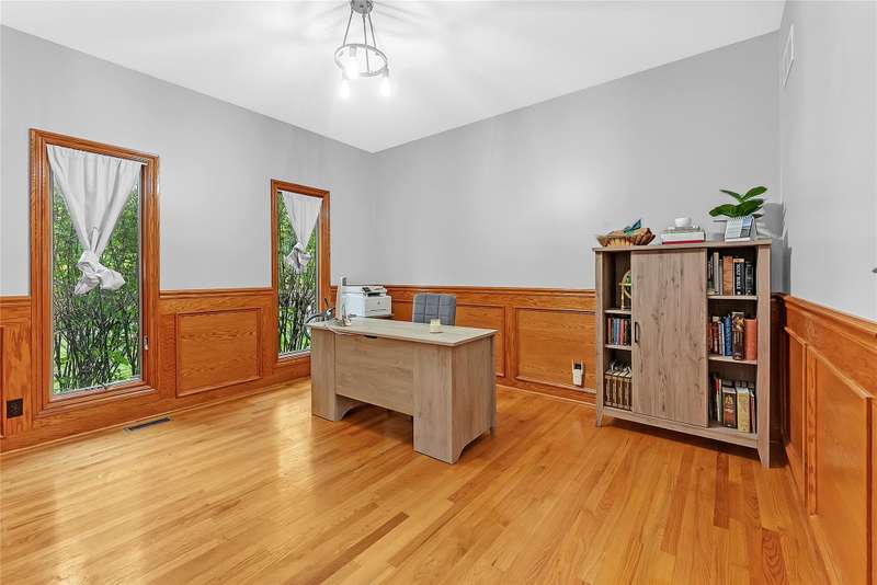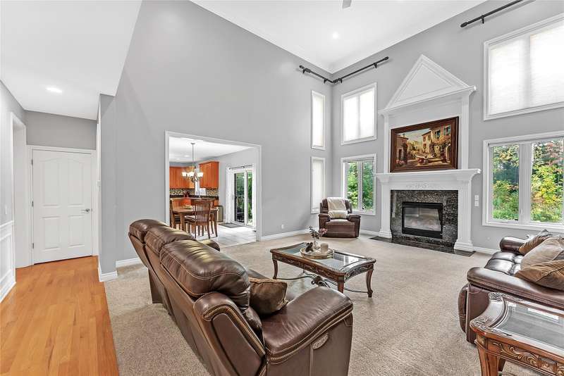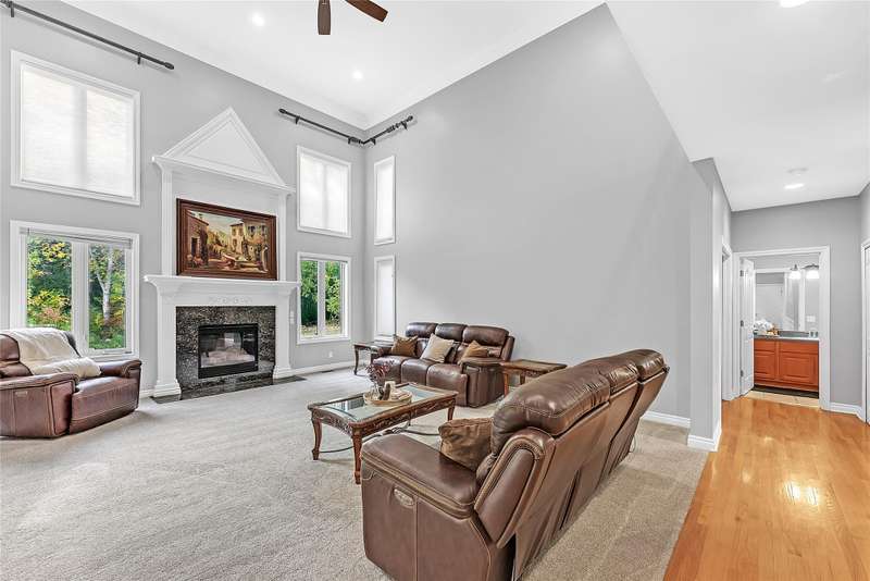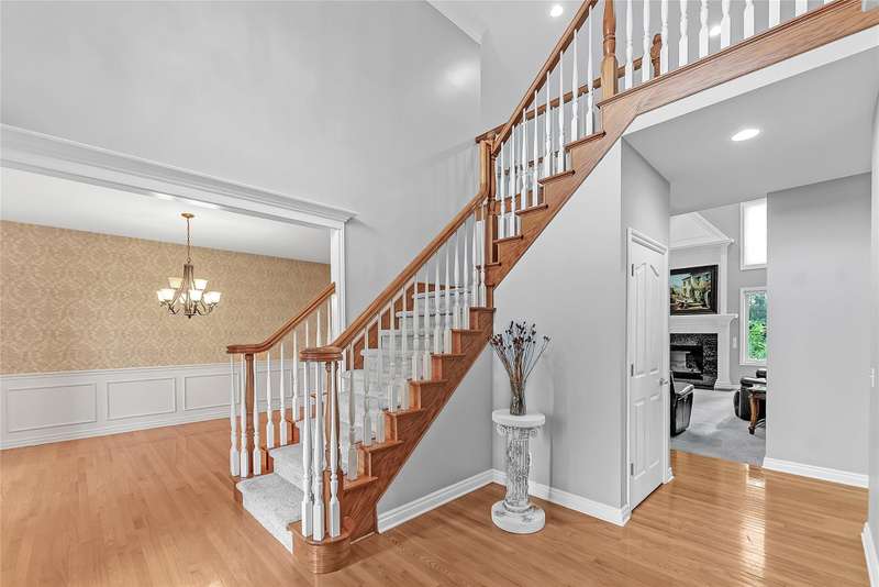 Welcome to this stunning colonial brick home in the highly sought-after Orchards Golf Community. Offering 4 spacious bedrooms, 3.1 bathrooms, and situated on nearly half an acre of land, this home is an absolute gem. As you enter, you’ll be captivated by the grand foyer and great room, featuring soaring 18-foot ceilings and remote control Hunter Douglas blinds that provide both convenience and style. The dramatic gas fireplace with an elegant mantle, complemented by beautiful crown molding, creates a warm and inviting atmosphere. The chef's kitchen is a true highlight, with granite countertops, a large kitchen island, a Jenn-Air cooktop, and double ovens, making it perfect for both everyday meals and entertaining. The first floor also includes a private library for those who work from home. The vast master bedroom boasts a recessed ceiling and a luxurious en suite with a spacious shower and an extra-long Jacuzzi tub. Additionally, a bonus room with custom California Closets provides ample storage space. The second bedroom is a Princess Suite with its own private full bathroom and walk-in closet. The third and fourth bedrooms share a separate full bath. For those needing additional space, there’s a secluded study or 5th bedroom with hardwood floors and French doors, offering endless possibilities. Outside, you’ll enjoy the beautiful brick paver walkways and patio, surrounded by a boulder retaining wall and professionally designed landscaping by English Gardens. This home has been meticulously maintained with newer appliances (2020), a new sump pump (2021), and fresh carpet (2021). Don’t miss the chance to make this spectacular home your own!