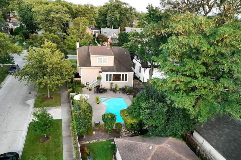 Welcome home to your personal retreat on a Corner Lot in the Heart of Park Ridge! Bring your ideas to refresh and update this charming and spacious 3-bedroom, 3-bathroom bungalow. The true showstopper is the backyard oasis-a beautifully landscaped retreat featuring a 15x30 in-ground, heated pool with an attached jacuzzi, a generous patio for relaxing or entertaining, a natural gas grilling station, and a fully fenced yard for privacy. Whether you're hosting summer gatherings or enjoying a peaceful evening swim, this backyard is designed to impress. Inside, the home is equally inviting. The main level includes a sun-filled living room with a cozy fireplace, a formal dining room, and a full bathroom. The kitchen features stainless steel appliances, generous cabinet space throughout, and a center island with seating. A vaulted-ceiling breakfast nook offers an additional dining area and floods the kitchen with natural light. Upstairs, the private primary suite includes a full en-suite bath, joined by two generously sized bedrooms. Comfort is ensured year-round with baseboard heat and dual-zone central air, along with energy-efficient thermal windows. The expansive finished basement adds valuable living space, featuring a large recreation room, laundry area, utility room, and a full bath. This space is ideal for an in-law suite, a teen retreat, or an entertainment hub! With dual egress and direct walk-out access to the backyard, transitioning from indoor comfort to outdoor enjoyment is effortless. Additional highlights include an oversized 2.5-car garage (22x24) with alley access, newer roof and siding (2012), and proximity to everything: Edison Park dining and shopping, vibrant Uptown Park Ridge for summer concerts in the park, car shows, Farmer's Market, and Taste of Park Ridge. Zoned for top-rated Roosevelt Elementary, Lincoln Middle School, and Maine South High School.