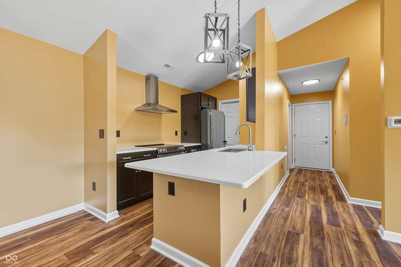 Just completed! The new units at Timber Creek are the least expensive new construction listed in Carmel for the last 5+ Years!! This highly desirable 3rd floor unit is a 2025 build with 2 bedroom/2 bathrooms, cathedral ceilings, and fireplace. Custom shelving in kitchen, both bedrooms and laundry room. This home was just completed this month. Some of the features include higher end cabinets with granite counters throughout. Oversized Walk-in tiled shower w/glass door in primary bedroom, oversized 20" height soaking tub/shower combo in guest bathroom, Anti fog dimmable LED touch sensor mirrors in both bathrooms, 17" height toilets (ADA compliant), ALL GE Stainless Steel appliances, large walk-in closets in both bedrooms and luxury vinyl plank flooring throughout. 1,000-watt microwave drawer, Ecobee with smart sensor, Everything is warrantied. This community features a community pool, clubhouse with small gym, has very low monthly HOA fees and is located near the Monon and only a bike ride away from Midtown, the Palladium and the Arts district. This unit comes with a builder's warranty, and everything in the unit is new and warranted (including the HVAC, water heater, windows and all appliances). Unlike the older units in both the Timber Creek and Lennox Trace communities--these new units ARE NOT PLUMBED with problematic polybutylene plumbing but are plumbed with new, much more desirable pex lines. They additionally feature a fire sprinkler/suppression system in all units. Seller can give paint allowance, should the bold colors not be to buyer's taste.