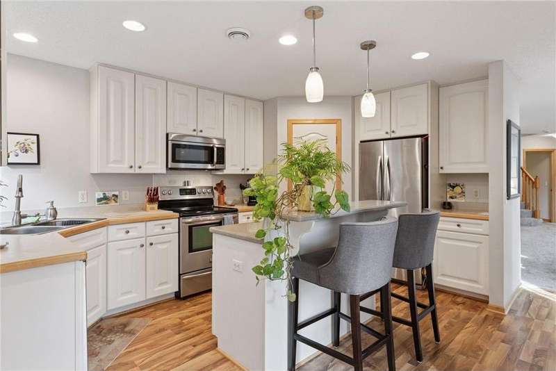 Welcome to this stunning 2-bedroom, 3-bath townhome in the highly sought-after Red Cedar Canyon neighborhood of Hudson. Thoughtfully designed and impeccably maintained, this home combines comfort, functionality, and timeless style. Step inside to discover soaring vaulted ceilings and a dramatic wall of windows that bathe the open concept living space in natural light. The inviting living room centers around a gas fireplace with custom built-in cabinetry, offering the perfect blend of warmth and elegance. The chef’s kitchen features ample counters and cabinetry, corner pantry, stainless-steel appliances and a cozy breakfast nook that opens to your front patio, ideal for morning coffee or quiet evenings. A main-floor powder room, and a spacious laundry room with a sink and extensive cabinet storage, add convenience to daily living. The main level private primary suite offers built-in cabinetry, walk-in closet, and a spa-inspired bath showcasing a separate walk-in shower and a luxurious soaker tub, your personal retreat after a long day. A spacious upper-level loft offers endless possibilities for a media space, a study, or a reading nook, while the second bedroom with its own private bath makes an ideal guest suite or dual-purpose office. Additional highlights include an oversized storage room off the loft, and a two-car attached garage with a built-in storage nook. Enjoy peaceful, low-maintenance living in a beautiful neighborhood with tree-lined streets, walking paths, and quick access to Weitkamp Park, shopping, downtown Hudson, and I-94. The home inspection has been completed for you. See supplements for photos, tour, Matterport Floorplan, and more. Ready to make it yours? Schedule your private showing today and see what Red Cedar Canyon living is all about!