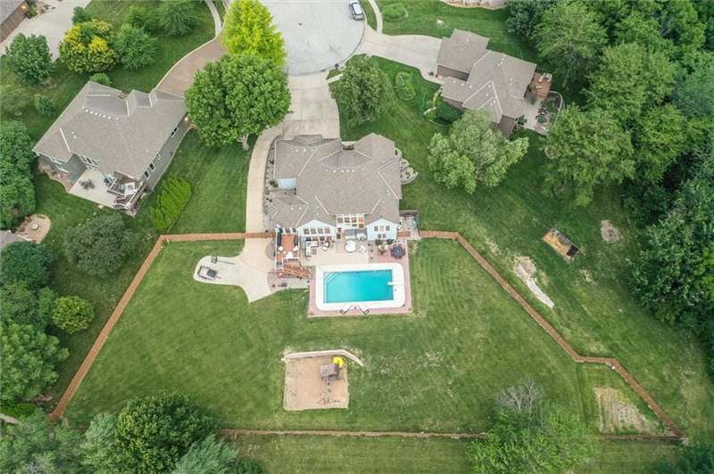 Welcome to your dream home on a cul-de-sac. This stunning 4-bedroom, 3.5-bathroom home offers the perfect blend of comfort, charm, and outdoor living. Each bedroom features its own spacious walk-in closet and private en suite bathroom, ideal for both everyday living and hosting guests with ease. Inside, youll find arched ceilings, bullnose walls, and large windows that flood the space with natural light, all covered with stylish roller shades for a clean, modern look. The finished basement is built for entertaining, complete with a wet bar and a walkout that leads straight to your private backyard oasis. Spend your days by the poolcomplete with a diving board and cover or relax on the expansive patio with convenient driveway access. The large, fenced-in yard offers both privacy and plenty of space to enjoy the outdoors.This home checks all the boxesluxury, functionality, and a backyard built for memories. Here are some house highlights- Pool Features: Pentair Globrite LED Lights, Multiple Colors! Eclipse Automatic Undertrack Cover, Salt Water, 18x36 and 8 Deep End, Heating and Chilling System! NEW 50 Year Presidential Roof Installed! New Quartz Countertops and Sink in the Kitchen. Pro Landscaping added to the sides of the house, 1.2 AcresCul de Sac, Sprinkler System, Generator Ready w/ Panel, Extra Attic Storage in the Garage, Electric Retractable Awning on the Back Patio, and close to Smithville Lake!