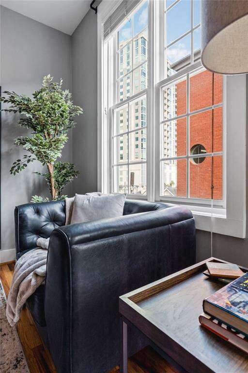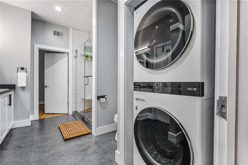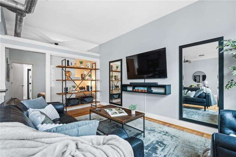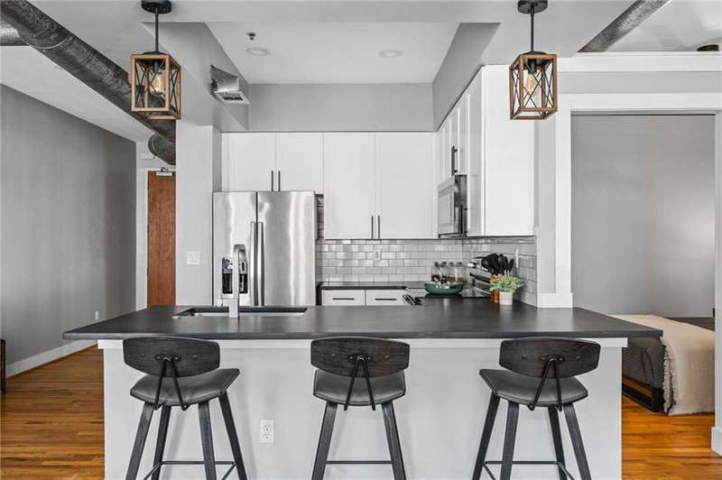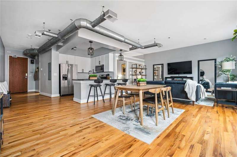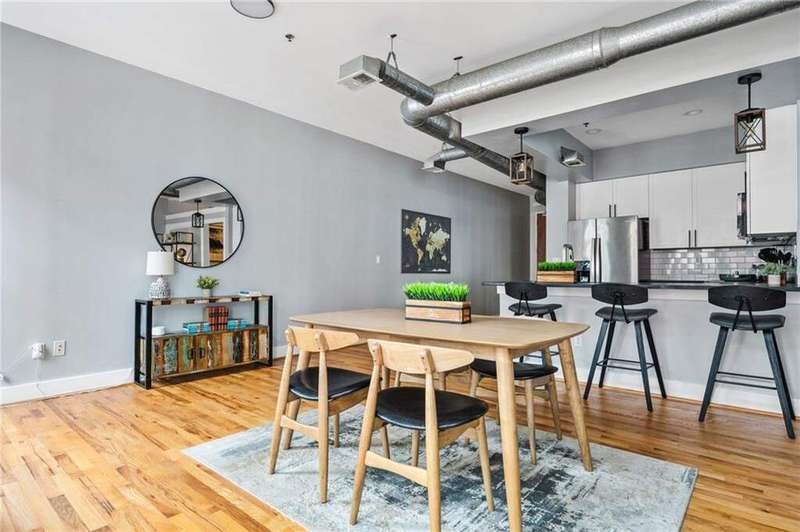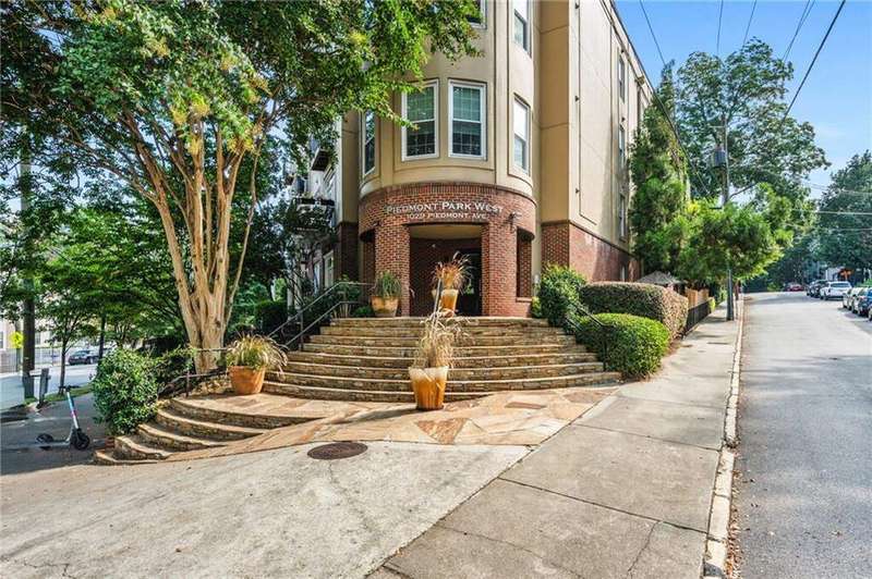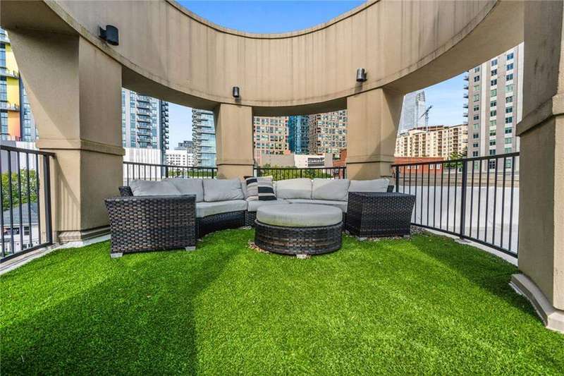 Experience the best of city living in this beautifully updated open-concept condo in the heart of Midtown! The modern kitchen features white shaker cabinets, stone countertops, stainless steel appliances, and a breakfast bar for casual dining. The dining area opens to a Juliette balcony through French doors, filling the space with natural light and offering an easy flow into the spacious living room. Gorgeous hardwood floors run throughout, adding warmth and style. The primary suite boasts a spa-like en-suite bath and a large walk-in closet, while a stackable washer/dryer adds everyday convenience. Relax or entertain on the updated rooftop deck with stunning views of the Midtown skyline, complete with a gas grill and seating area. Additional highlights include an assigned parking space in the secure gated garage and unbeatable proximity to all Midtown has to offer-Piedmont Park right in your backyard, The High Museum, Colony Square, Marta, and local favorites like Flying Biscuit and Caribou Coffee. Move-in ready and perfectly located, this condo combines comfort, convenience, and vibrant city living!