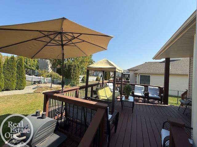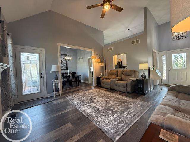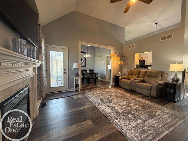 Stunningly beautiful great room ranch in Richmond, tastefully decorated and maintained, open concept, formal dining area, cathedral ceiling in great room w/gas log fireplace, laminate flooring throughout excluding bedrooms, ceramic tiled baths, white "Euro-style" kitchen cabinets w/solid surface countertops, newer appliances, recessed lighting, master bdrm w/large master bath w/custom shower & tub, rear glassed door leads to private custom raised deck, brick paver sidewalks, inground sprinklers, fenced in backyard, amazing finished basement w/pool table, entertainment area, cabinets & countertop, 3rd full bath w/shower stall, newer furnace, A/C, hot water tank, 3-D roof, many more features, shows very well, quick occupancy.