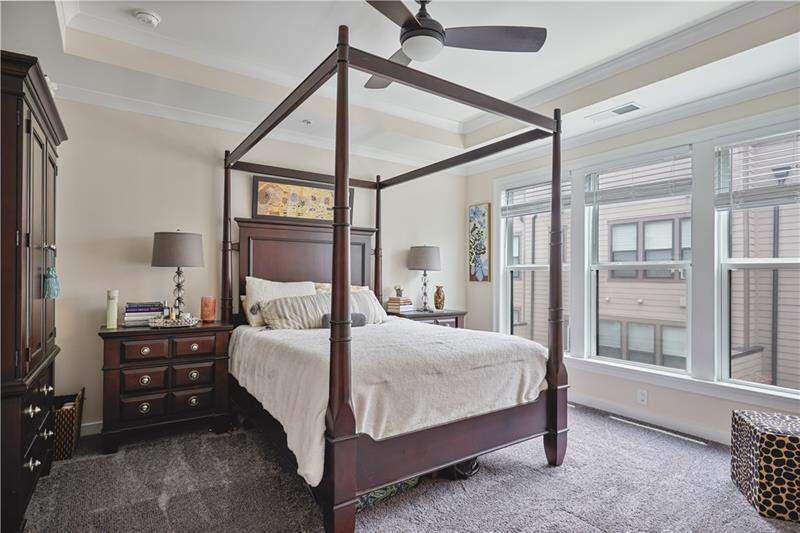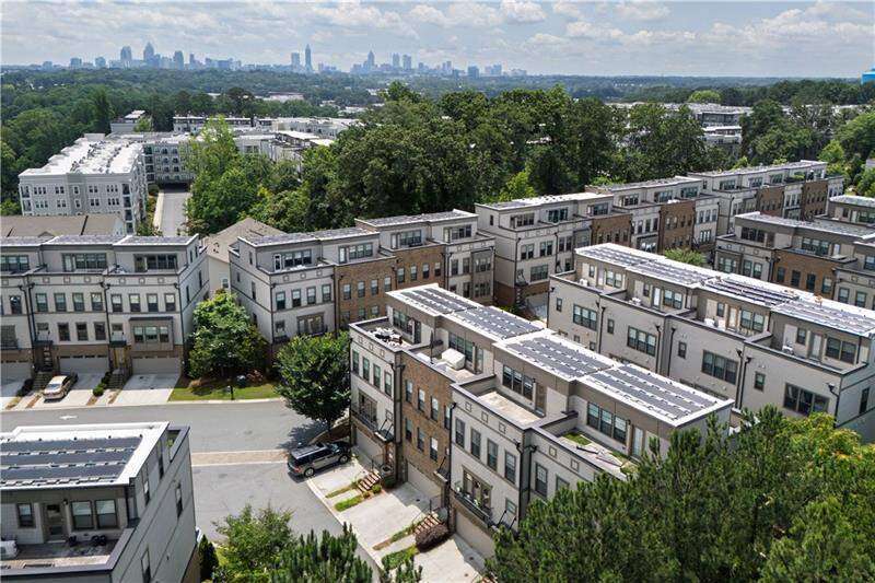 Welcome to this stunning, energy-efficient smart home located in the heart of a Phase 1 GA Power Smart Home Neighborhood-where innovation meets luxury living, on a quiet cul-de-sac. This home is designed for the future, featuring: Solar panels with energy storage, EV charger in the spacious 2-car garage, whole-home Wi-Fi access points, Vivint security system and built-in in-home sprinkler system. Step into the entry foyer and head up to the open-concept main level-ideal for entertaining. The gourmet kitchen features quartz countertops, stainless appliances, a 5-burner cooktop, wall and oven/microwave unit, and a large island with built-in trash and recycling. You'll also find a built-in office nook, remote-controlled shades, and access to the outdoor deck, dining area with Juliet balcony, and triple sliding glass doors that flood the space with natural light. Upstairs, enjoy two luxurious primary suites, each with spa-like en-suite baths, double vanities, and rain showers for a relaxing retreat. At the top, the 4th-floor loft offers expansive windows, a half bath, and access to two rooftop terraces with breathtaking views-perfect for indoor-outdoor living and unforgettable entertaining. The terrace-level guest suite includes its own bedroom, living area, en-suite bath, and private patio-it's perfect for visitors, roommates, or multi-generational living. All this just minutes from Chattahoochee Food Works, Westside Provisions, TopGolf, Westside Park, and nearby trails including the Beltline and Silver Comet Trail. Welcome Home!