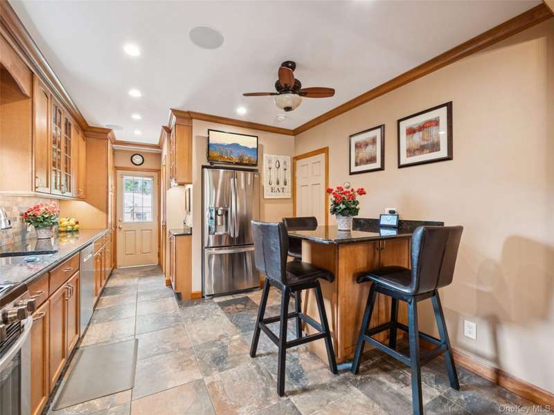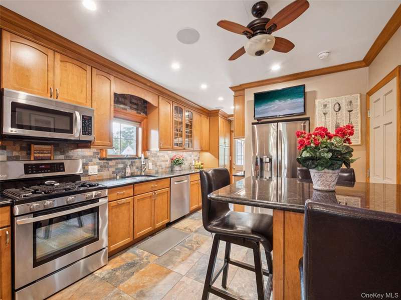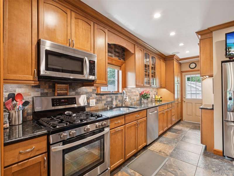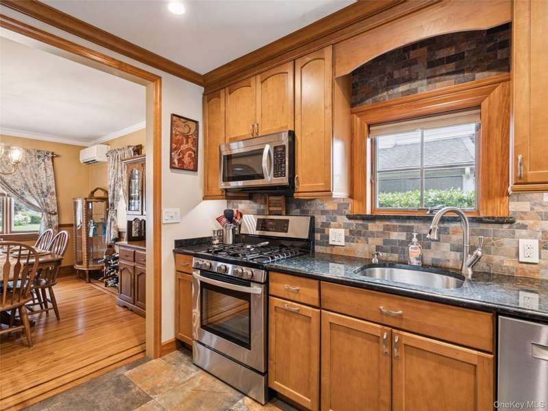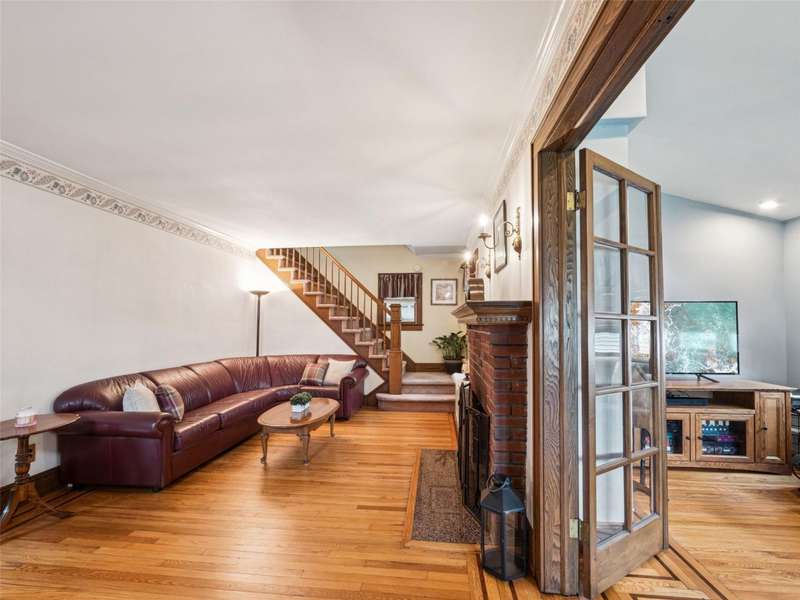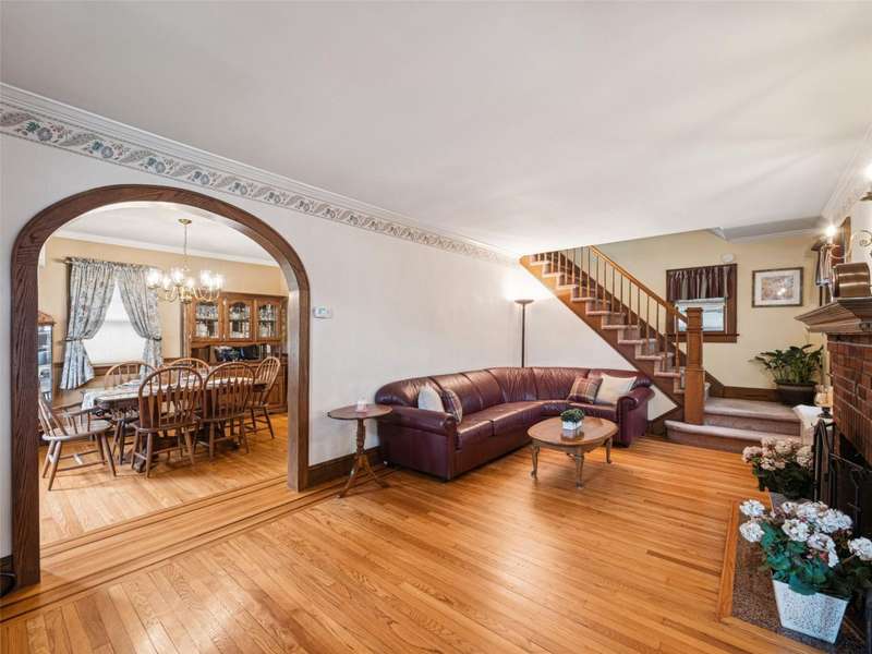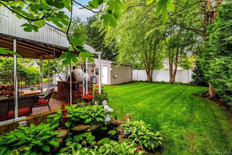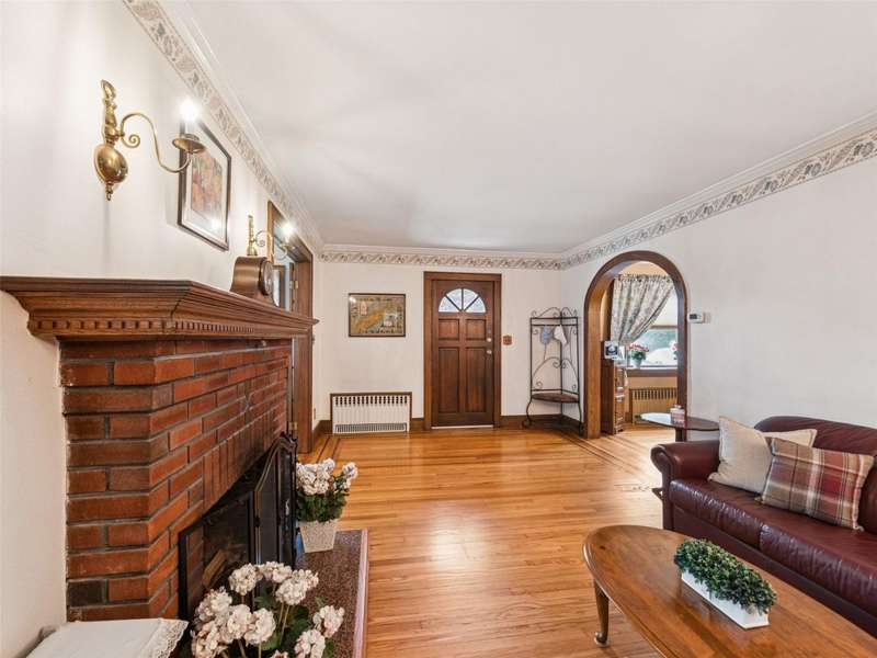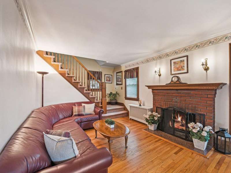 Pride of ownership is immediately evident in this meticulously maintained Colonial home. The well-manicured front yard offers impressive curb appeal and a welcoming first impression. Upon entry, the expansive living room showcases gleaming hardwood floors and a classic wood-burning fireplace, reflecting the home's enduring quality and thoughtful upkeep. To the right, a bright and inviting den-framed by a wall of windows-serves as an ideal space for relaxation or media viewing. To the left, the formal dining room is elegantly appointed with bay windows and transitions seamlessly into a large updated eat-in kitchen. This culinary space is outfitted with radiant heated tile flooring, granite countertops, premium stainless steel appliances, custom cabinetry, recessed lighting, and a built-in Sonos speaker system-designed to accommodate both everyday living and refined entertaining. A tastefully designed powder room completes the main level.Basement partially finished with Laundry, utilities, central vacuum, and storage.The second floor features a spacious primary bedroom with dual closets, two additional bedrooms, a well-appointed hall bathroom with a full tub and access to the attic for storage.The fenced backyard offers a tranquil retreat, complete with a flourishing herb garden, mature shade trees, a serene bubbling pond, and a charming covered porch. A built-in pizza oven adds a unique touch, allowing for delightful al fresco dining experiences.An extended garage equipped with its own electrical service presents an excellent opportunity for hobbyists or those in need of a dedicated workspace. This residence offers a wealth of features and amenities that must be seen to be fully appreciated.
