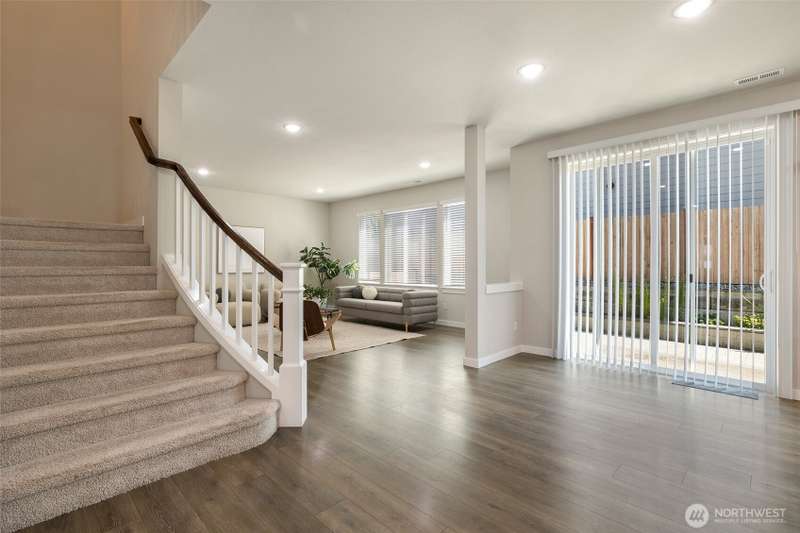 This stunning 5-bedroom, 3-bathroom residence offers the perfect blend of comfort, space, and modern amenities. Filled with plenty of natural light, the home features a bedroom and ¾ bath on the main level—ideal for guests or multi-generational living. Enjoy the benefits of central A/C and an open floor plan with both a living room and family room, perfect for entertaining or relaxing in style. The low-maintenance backyard is fully hardscaped with pavers, making it the ultimate setting for gatherings, BBQs, or quiet evenings under the stars. Upstairs, the luxurious primary suite boasts a separate seating area, private balcony, and an expansive en-suite bathroom with a massive walk-in closet that dreams are made of.